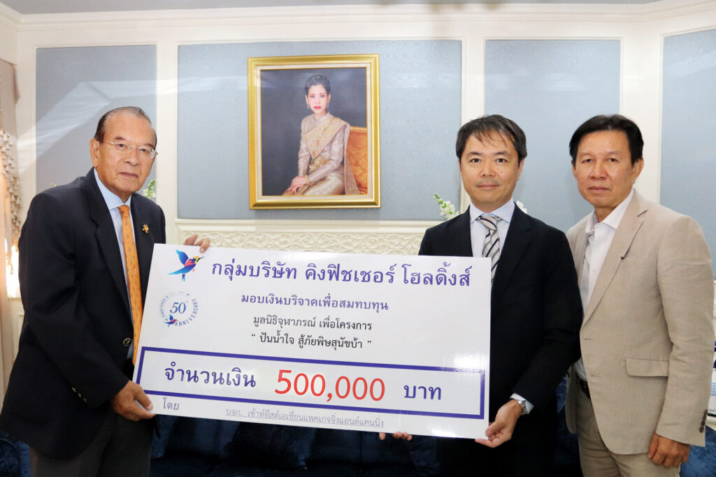 On January 26, 2024, the Chulabhorn Foundation represented by Lieutenant Chawat Artthayukti, Secretary – General of the Chulabhorn Foundation, received a donation of 500,000 baht for the project “Share Kindness to Fight Rabies”. The donation will be used to purchase veterinary tools and equipment in mobile operating units to support the operation of HRH Princess Chulabhorn’s project on “Disease-free Animals, Safe Humans from Rabies”. The donation was made by Mr. Jiro Yokota, Director, and Mr. Thongchai Chotsriluecha, General Manager, Kingfisher Holdings Limited. The ceremony was held in the Reception Room, 2nd Floor, Chemistry Research Building, Chulabhorn Research Institute. Public Relations Section, Office of the President January 26, 2024
