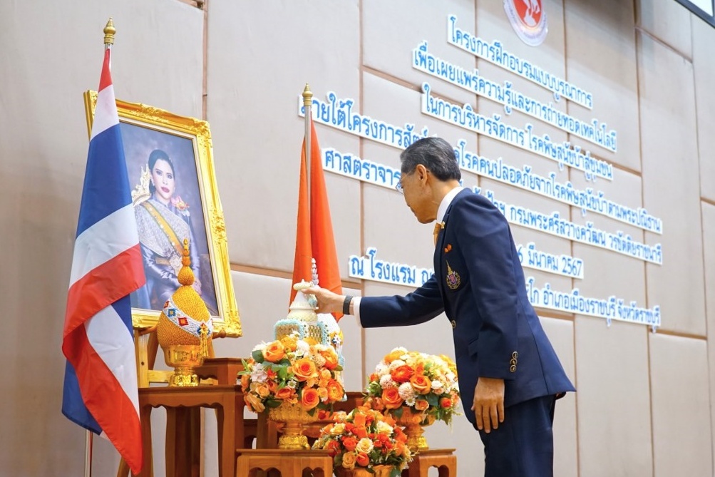 On July 13, 2024, by Royal Command of Professor Dr. Her Royal Highness Princess Chulabhorn Mahidol, President of the Chulabhorn Research Institute (CRI), Mr. Chalit Manityakul, Vice President for International Relations of the CRI, presided over the opening ceremony of the Project on Integrated Training for Knowledge Dissemination and Technology Transfer on the Management of Rabies to Communities, at Vasidtee City Hotel, Mueang Suphan Buri District, Suphan Buri Province. Her Royal Highness realizes the importance of addressing rabies, a major public health issue in the country, which necessitates urgent action to achieve the goal of the Project “Humans and animals are safe from rabies in a sustainable manner”. The Project fostered cooperation among relevant sectors, including the Faculty of Veterinary Medicine and the Faculty of Education, Kasetsart University, Suphan Buri Provincial Public Health Office, and Suphan Buri Provincial Livestock Office, etc. The aim was to facilitate the exchange of knowledge on animal health, human health, and the efficient management of dog issues in communities. Additionally, a network was established to support future rabies prevention efforts in these communities. Core activities of the training comprised academic lectures and a workshop on using applications to prevent rabies in schools and communities, demonstrations of rabies prevention methods, first aid procedures for animal bites, and an overview of laws and regulations related to the...