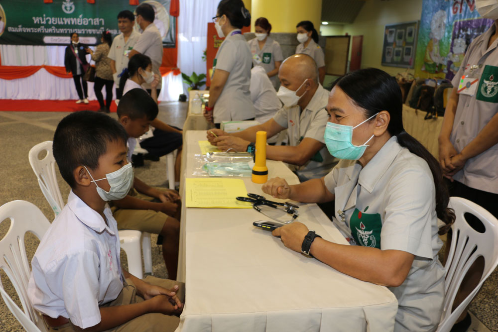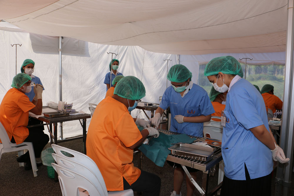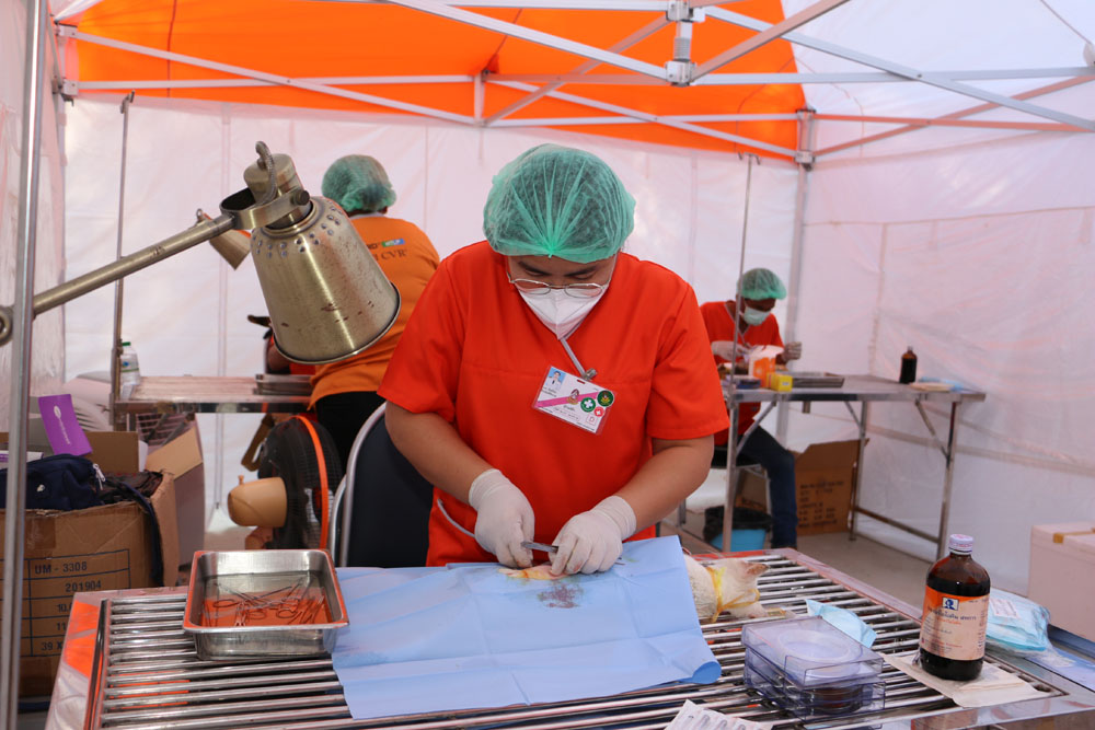 During the mission, Her Royal Highness directed the Princess Mother’s Medical Volunteer Unit (PMMV) in Surat Thani and Nakhon Si Thammarat Provinces, from Provincial Public Health Offices and local hospitals with their teams of doctors, nurses, and medical personnel, equipped with expertise and resources, to provide services to local people, including registration, patient history collection, screenings, weight and height measurements, blood pressure checks, disease diagnosis, and prescriptions of medicines according to symptoms.  The teams offered general healthcare services, dental care, as well as traditional Thai and Chinese medical treatments.  Common health issues identified in the two provinces included musculoskeletal and joint diseases, cardiovascular conditions, skin ailments, and respiratory diseases, among others.