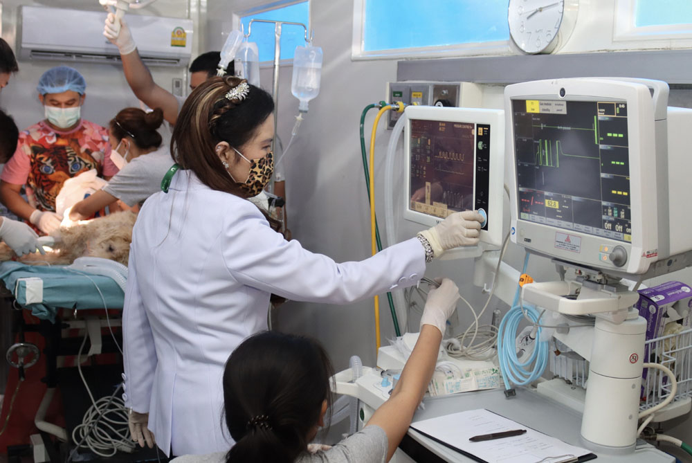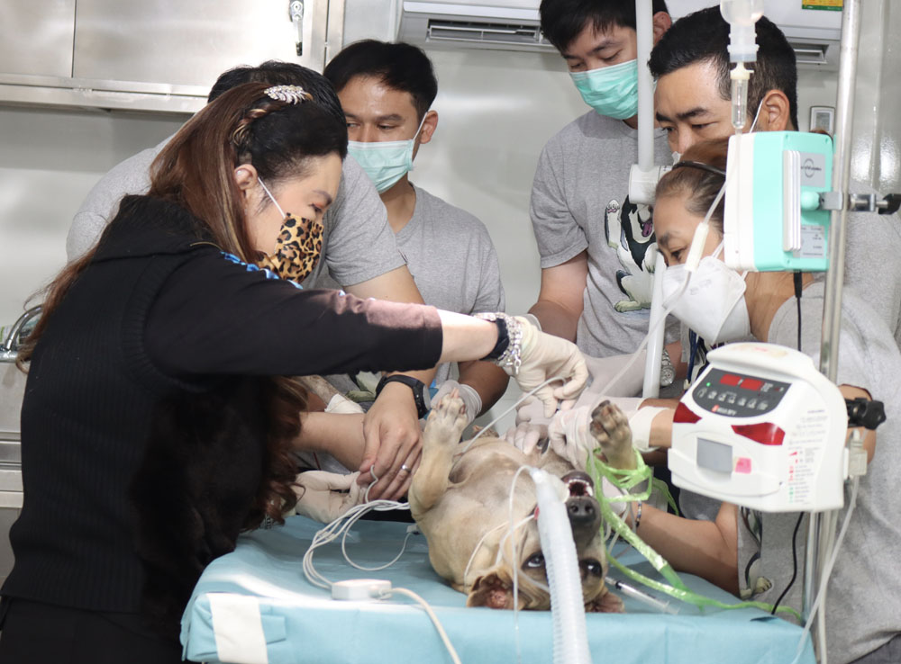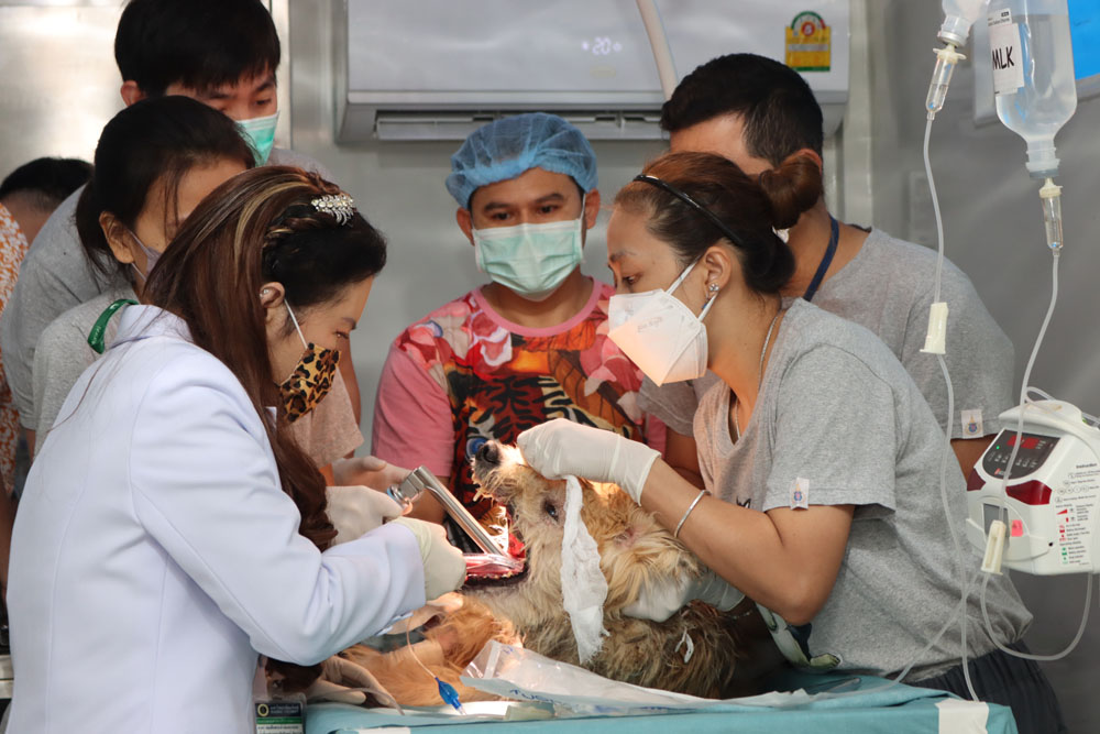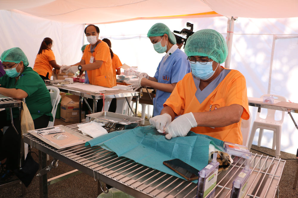 veterinarians from the Chulabhorn Veterinary Volunteer Unit, for sterilization of dogs and treatment of other diseases, such as mammary gland tumors, skin tumors, uterine infections, and cryptorchidism in male dogs.  These activities were conducted on mobile surgical unit, equipped with high safety standards.  Indeed, Her Royal Highness’s Royal Duties constitute a vital mission to campaign for addressing stray dog issues, providing healthcare, and sustainable eradication of rabies from Thailand.