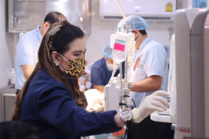 Afterwards, Her Royal Highness performed anesthesia on animals together with the team of HRH Princess Chulabhorn’s Veterinary Volunteer Unit to examine and sterilize dogs in the local areas in order to control their population that may carry rabies to humans and animals. Sterilization is a permanent birth control method that best prevents the spread of rabies. It also ensures long-term good health for the animals, and reduces the risk of certain types of cancer, as well as other diseases such as uterine infection, mammary gland tumors, and benign prostatic hyperplasia. All animals undergoing sterilization were well taken care of, every step efficiently undertaken. This included anesthesia, monitoring vital signs with modern veterinary tools and devices, and assessing safety during the operation.Professor Dr. Her Royal Highness Princess Chulabhorn Mahidol ensured the appropriate method of using anesthetics for each animal to maximize safety throughout the sterilization process, based on veterinary science principles.