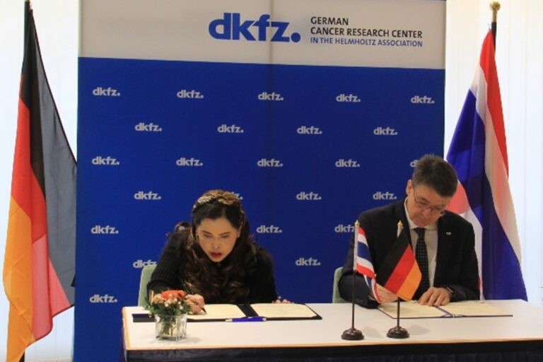 “It is my great pleasure to have the opportunity to visit the German Cancer Research Center (DKFZ) again with teams of the Chulabhorn Royal Academy and the Chulabhorn Research Institute. In my capacity as President of the Chulabhorn Research Institute, I have initiated a long-term collaboration with the DKFZ for over 30 years for advanced research and human resource development. Since then, scientists from the DKFZ have made regular visits to the Chulabhorn Research Institute for cooperation in research and academic works, as well as lecturing and training of researchers at the Institute. Therefore, this is an opportune time for all of us who are gathering here today to expand our cooperation which will greatly enhance the understanding and invention of new and better methods for cancer treatment”.