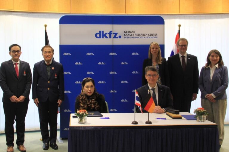 Professor Dr. Her Royal Highness Princess Chulabhorn Mahidol, President of the Chulabhorn Research Institute (CRI), has tirelessly committed Herself to the development and creation of knowledge through study, research, academic work, and modern innovation. This is achieved through quality study and research processes on par with international standards and a consistent focus on promoting the health and quality of life of the Thai people. In January 2025, Her Royal Highness made a Royal Visit to the German Cancer Research Center (DKFZ) in Heidelberg, Federal Republic of Germany. The DKFZ has had a long-standing collaboration with the CRI through Her Royal Highness’s ongoing research, academic work, and visits to observe cutting-edge research activities in parallel with efficient cancer treatment.