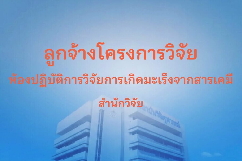 ขยายเวลาประกาศรับสมัคร ตำแหน่ง ลูกจ้างโครงการ ห้องปฏิบัติการวิจัยการเกิดมะเร็งจากสารเคมี สำนักวิจัย สถาบันวิจัยจุฬาภรณ์ จำนวน 1 อัตรา ด้วยสำนักวิจัย สถาบันวิจัยจุฬาภรณ์ มีความประสงค์จะรับสมัครคัดเลือกบุคคล จำนวน 1 อัตรา...