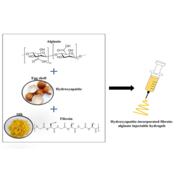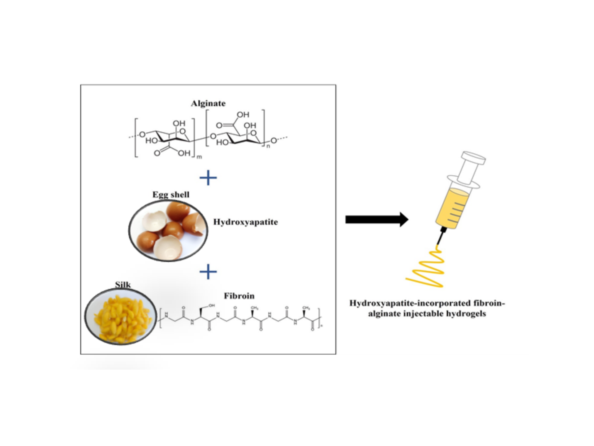 อีกหนึ่งตัวอย่างงานวิจัยด้านการประยุกต์ใช้ จะเป็นการนำหลักการเกี่ยวกับโครงร่างเลี้ยงเซลล์ (scaffolds) ซึ่งเป็นการเพาะเลี้ยงเซลล์ที่ต้องการให้เจริญเติบโตในวัสดุทดแทนเนื้อเยื่อ จากนั้นนำไปปลูกถ่ายในตำแหน่งที่ต้องการเพื่อทำหน้าที่เป็นโครงวัสดุที่ทำให้เกิดการสร้างเนื้อเยื่อใหม่ และจะย่อยสลายเมื่อมีการทดแทนของเนื้อเยื่อ โดยอาศัยหลักการดังกล่าว นำไปสู่งานวิจัยพัฒนาวัสดุปลูกกระดูกทางด้านทันตกรรม (dental tissue scaffolds) (รูปที่ 2) ในรูปแบบไฮโดรเจลสำหรับฉีดจากวัสดุคอมโพสิตอัลจิเนต เส้นใยไหมไฟโบรอินและอนุภาคไฮดรอกซีอะปาไทท์ โดยทำการสังเคราะห์อนุภาคไฮดรอกซีอะปาไทท์จากเปลือกไข่ด้วยวิธีการตกตะกอนทางเคมี ซึ่งจะให้วัสดุเซรามิกจากแคลเซียมฟอสเฟตที่มีองค์ประกอบทางเคมีและโครงสร้างผลึกคล้ายคลึงกับองค์ประกอบหลักของกระดูกและฟัน เส้นใยไหมไฟโบรอินจากการสกัดเศษรังไหม จะเป็นเส้นใยโปรตีนที่เข้ากันได้ดีกับร่างกาย มีลักษณะคล้ายกับคอลลาเจนในกระดูกและฟัน ถือเป็นการนำเศษวัสดุเหลือทิ้งมาใช้ให้เกิดประโยชน์ ซึ่งงานวิจัยดังกล่าวเป็นการพัฒนาองค์ความรู้เพื่อผลิตวัสดุทางการแพทย์ขึ้นใช้ภายในประเทศ ลดการนำเข้าจากต่างประเทศ สามารถนำไปใช้ประโยชน์ทางด้านการแพทย์ได้ อันจะส่งผลให้สถานพยาบาลและผู้ป่วยสามารถเข้าถึงการรักษาได้อย่างมีประสิทธิภาพด้วยต้นทุนที่ต่ำลง โดยในอนาคตทีมวิจัยได้เตรียมที่จะทำการทดลองในระดับสัตว์ทดลองและในมนุษย์เป็นลำดับต่อไป เป็นการต่อยอดการนำเทคโนโลยีทางด้านโพลิเมอร์ควบคู่กับการพัฒนาด้านการแพทย์ เพื่อลดการนำเข้าเทคโนโลยีจากต่างประเทศ พร้อมทั้งยกระดับคุณภาพชีวิตที่ดีของคนไทย และเป็นกลไกในการขับเคลื่อนงานวิจัยของประเทศให้เติบโตอย่างยั่งยืนต่อไป