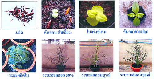 รูปที่ 1 การเจริญเติบโตของฟ้าทะลายโจรในระยะต่าง ๆ