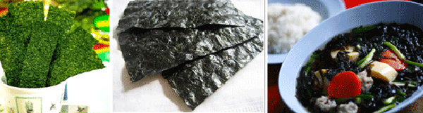 สาหร่ายเป็นแหล่งของโปรตีนคล้ายเนื้อสัตว์ ชาวญี่ปุ่นและชาวจีนเป็นชาติแรกๆ ที่เห็นคุณค่าของสาหร่าย อาหารญี่ปุ่น มีเมนูอาหารที่ใช้สาหร่ายเป็นส่วนผสมมาก ส่วนอาหารจีนก็เช่นเดียวกัน คนจีนเรียกสาหร่ายทะเลว่า “จีฉ่าย” เรามักจะนิยมนำมาปรุงอาหาร เช่น แกงจืดใส่กับเต้าหู้หมูสับ เป็นรายการอาหารที่นิยมของทั้งชาวจีนและไทย นอกจากนี้ เราจะเห็นสาหร่ายทะเลอีกรูปแบบหนึ่งที่ตัดเป็นแผ่นบางๆ สี่เหลี่ยมจัตุรัสบ้าง ผืนผ้าบ้าง บรรจุซองพลาสติก ซองละ 4-5 แผ่น ขายตามซุปเปอร์มาร์เก็ตหรือร้านขายขนม เด็กๆ จะชอบซื้อรับประทาน เป็นสาหร่ายรสชาติอร่อย เพราะมีการปรุงแต่งรสชาติด้วย น้ำตาล พริกไทย หรือเครื่องปรุงรสต่างๆ สาหร่ายเหล่านี้จะเป็นสายพันธุ์ Porphyra ชาวญี่ปุ่นเรียกว่า Nori เป็นสาหร่ายสีแดง ส่วนอีกสายพันธุ์หนึ่งชื่อ สายพันธุ์ Laminaria เป็นสาหร่ายสีน้ำตาล คุณค่าสารอาหารของสาหร่าย สถาบันวิจัยโภชนาการ มหาวิทยาลัยมหิดล ได้ศึกษาคุณค่าทางโภชนาการของสาหร่ายทะเล ทั้งชนิดแผ่นกลมไม่ปรุงรส (จีฉ่าย) ที่นิยมนำมาประกอบอาหาร และสาหร่ายปรุงรสชนิดบรรจุซอง จากการวิเคราะห์คุณค่าทางโภชนาการ พบว่า มีโปรตีนระหว่าง 10-40 กรัมต่อสาหร่าย 100 กรัม (1 ขีด) (www.healthtodaythailand.net) ซึ่งจัดได้ว่า สาหร่ายทะเลแห้งชนิดแผ่นสามารถเป็นแหล่งที่ดีของโปรตีน จีฉ่ายที่นิยมนำมาประกอบอาหาร มีปริมาณโปรตีนสูงที่สุด เมื่อเทียบกับสาหร่ายชนิดปรุงรส นอกจากนี้คุณค่าของใยอาหาร (Dietary fiber) ซึ่งพบว่า มีสูงตั้งแต่ 27-41 กรัมต่อสาหร่าย 100 กรัม นอกจากนี้สาหร่ายยังมีไขมัน แป้ง และน้ำตาลซึ่งจัดว่าน้อยมาก สาหร่ายยังมีโปรตีน และให้พลังงานโดยรวมอยู่ระหว่าง 366-382 กิโลแคลอรีต่อสาหร่าย 100 กรัม