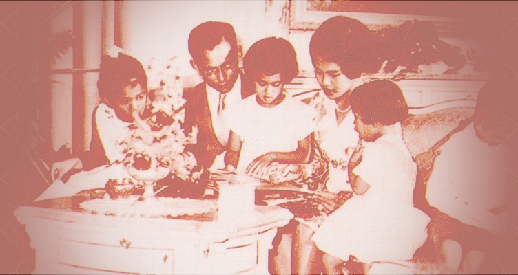 ฉายพระรูปร่วมกับพระราชบิดา พระราชมารดา พระเชษฐภคินีทั้งสอง และพระเชษฐา