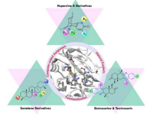 สารฮูเปอซีนเอ อัลฟ่าโอโนเซอรีนและเซอราทีนที่แยกบริสุทธิ์ได้ในปริมาณสูง สามารถนำมาสังเคราะห์เพื่อปรับเปลี่ยนโครงสร้างบางส่วนให้ได้อนุพันธ์ใหม่ ๆ ทำให้มีฤทธิ์ทางชีวภาพที่ดีขึ้น และศึกษาความสัมพันธ์ระหว่างฤทธิ์ทางชีวภาพกับโครงสร้างหลักกับหมู่ฟังก์ชันที่มีความสำคัญต่อฤทธิ์ในการยับยั้งเอนไซม์อะซิทิลโคลีนเอสเทอเรส โดยอาศัยความช่วยเหลือด้านคอมพิวเตอร์ทั้งในการออกแบบและคำนวณแบบจำลองอันตรกริยาของสารกับเอนไซม์เป้าหมาย