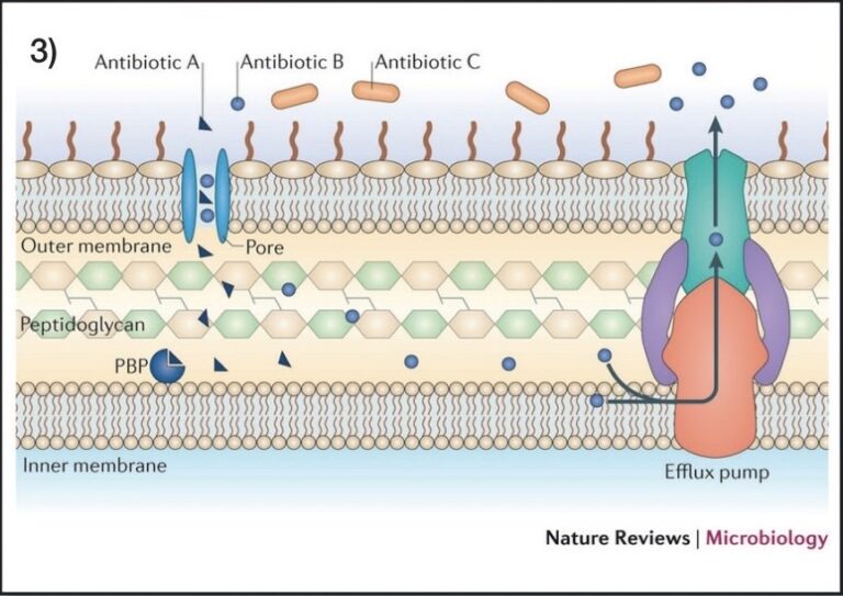 3) แบคทีเรียลดปริมาณยาปฏิชีวนะภายในเซลล์