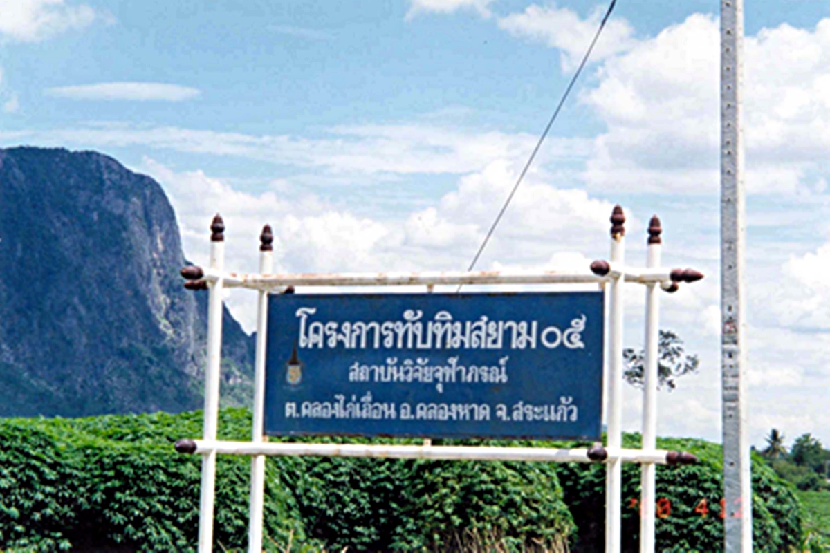สถาบันวิจัยจุฬาภรณ์ ได้เริ่มโครงการปลูกพืชสมุนไพรที่หมู่บ้านทับทิมสยาม 05 ตำบลคลองไก่เถื่อน อำเภอคลองหาด จังหวัดสระแก้ว ตั้งแต่ปี พ.ศ. 2542 โดยมีการปลูกขมิ้นชัน ไพล และฟ้าทะลายโจร เพื่อให้ราษฎรในหมู่บ้านมีรายได้เสริม หมู่บ้านนี้เคยเป็นหมู่บ้านเขมรอพยพมาก่อน หลังจากเขมรได้กลับคืนประเทศกัมพูชา สถาบันวิจัยจุฬาภรณ์จึงได้รับมอบหมายให้จัดตั้งหมู่บ้านทับทิมสยามตามแนวชายแดนติดประเทศกัมพูชา โดยอยู่ในความดูแลของสำนักกิจกรรมพิเศษ สถาบันวิจัยจุฬาภรณ์ ปัจจุบัน หมู่บ้านแห่งนี้เป็นแหล่งปลูกพืชสมุนไพรหลายชนิด และเป็นแหล่งศึกษาดูงานด้านการผลิตสมุนไพรที่มีชื่อเสียง ได้รับการยอมรับในด้านการผลิตวัตถุดิบสมุนไพรที่ได้มาตรฐานสากล และเป็นศูนย์การเรียนรู้ด้านการปลูกสมุนไพรอินทรีย์ ตามมาตรฐานการปฏิบัติทางการเกษตรที่ดี (Good Agricultural Practice: GAP) นอกจากนี้ ยังเป็นผู้ผลิตวัตถุดิบสมุนไพรหลักให้แก่ โรงพยาบาลวังน้ำเย็น และโรงพยาบาลเจ้าพระยาอภัยภูเบศร อีกด้วย