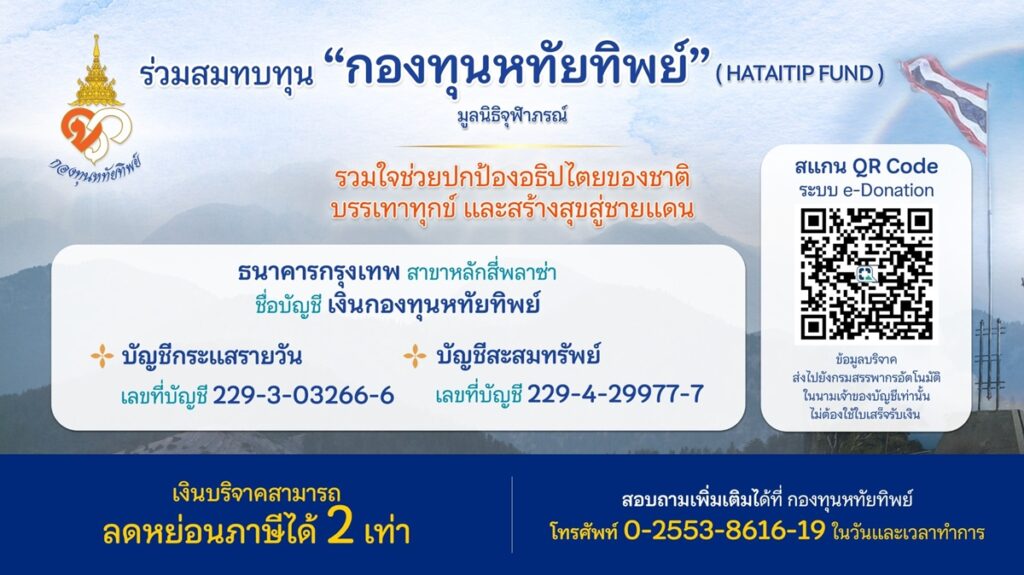 เมื่อวันที่ 21 สิงหาคม 2568 ร้อยโท ชวัช อรรถยุกติ เลขาธิการมูลนิธิจุฬาภรณ์ รับมอบเงินบริจาคสมทบทุนมูลนิธิ จุฬาภรณ์ จำนวน 100,000 บาท จากสมาคมแม่บ้านกองบัญชาการกองทัพไทย โดยมี ศ.ดร. อรพิน ผลสุวรรณ์ สบายรูป ภริยาผู้บัญชากา...