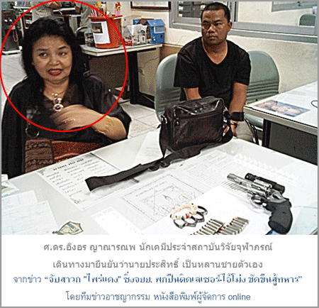 ตามที่มีข่าวอ้างถึงบุคคลชื่อ “ศ.ดร.อิงอร ญาณารณพ” ว่าเป็น นักเคมีประจำสถาบันวิจัยจุฬาภรณ์ จากหัวข้อข่าว “จับสาวก “ไพร่แดง” ซิ่งจยย.พกปืนติดเลเซอร์-ไอ้โม่ง ขัดขืนสู้ทหาร” โดยทีมข่าวอาชญากรรม หนังสือพิมพ์ผู้จัดการ online ในหน้าเวบไซต์ http://www.manager.co.th/Crime/ViewNews.aspx?NewsID=9530000060653 ลงวันที่ 3 พฤษภาคม 2553 เวลา 02:09 น. ตามภาพ นั้น