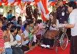 เมื่อวันที่ 4 ตุลาคม 2555 องค์ประธานสถาบันวิจัยจุฬาภรณ์เสด็จเยี่ยมราษฎร และหน่วยแพทย์ พอ.สว. ที่โปรดให้ออกหน่วยบริการตรวจรักษาโรคแก่ราษฎร ร่วมกับหน่วยแพทย์พระราชทานจากสถาบันวิจัยจุฬาภรณ์ ณ โรงเรียนร่มเกล้าพิทยาสรรค์ หมู่ที่6 บ้านสุริโย ตำบลร่มเกล้า อำเภอนิคมคำสร้อย จังหวัดมุกดาหาร หมู่บ้านแห่งนี้มีราษฎร 489 คน ราษฎรส่วนใหญ่ป่วยด้วยโรคระบบกล้ามเนื้อ โรคระบบทางเดินอาหาร และโรคระบบหายใจ ในการออกหน่วยแพทย์ครั้งนี้มีประชาชนมารับบริการตรวจรักษาโรคทั่วไปและรับบริการทันตกรรม จำนวน 382 ราย ในการนี้มีผู้ป่วยมาขอรับพระราชทานความช่วยเหลือจำนวน 9 ราย อาทิผู้ป่วยโรคหัวใจ โรคมะเร็ง และโรคเกี่ยวกับผิวหนัง ในการนี้ทรงมีพระวินิจฉัยร่วมกับคณะแพทย์เพื่อพิจารณาส่งตัวผู้ป่วยเข้ารับการรักษาในโรงพยาบาลที่เหมาะสมต่อไป นอกจากนี้ ยังโปรดให้คณะสัตวแพทยศาสตร์ มหาวิทยาลัยเกษตรศาสตร์ ให้บริการตรวจรักษาสัตว์เลี้ยงที่เจ็บป่วยพร้อมให้คำปรึกษาด้านการดูแลสัตว์เลี้ยงที่ถูกวิธี โอกาสนี้ พระราชทานพระวโรกาสให้สมาชิก พอ.สว.จังหวัดมุกดาหารเฝ้าฯ พร้อมทั้งทรงมีพระดำรัสถึงความกตัญญูซึ่งเป็นเครื่องหมายของคนดี การแสดงความกตัญญูที่ดีที่สุดคือ การทำหน้าที่ของตนเองให้ดีที่สุด
