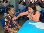 จากนั้น วันที่ 5 ตุลาคม 2555 ทรงเสด็จเยี่ยมราษฎร พร้อมทั้งทรงติดตามการดำเนินงานของหน่วยแพทย์ พอ.สว. และหน่วยแพทย์พระราชทานสถาบันวิจัยจุฬาภรณ์ ที่โปรดให้ออกหน่วยบริการตรวจรักษาราษฎรที่เจ็บป่วย ณ โรงเรียนอุ่มเหม้าประชาสรรค์ หมู่ที่5 บ้านโนนงาม ตำบลอุ่มเหม้า อำเภอธาตุพนม จังหวัดนครพนม หมู่บ้านแห่งนี้มีราษฎร 436 คน ราษฎรส่วนใหญ่ป่วยด้วยโรคระบบทางเดินหายใจ โรคระบบทางเดินอาหาร และโรคระบบกล้ามเนื้อ ในการออกหน่วยแพทย์ครั้งนี้มีประชาชนมารับบริการตรวจรักษาโรคทั่วไปและทันตกรรมจำนวน 387 ราย และมีผู้ป่วยที่ทรงรับไว้เป็นคนไข้ในพระราชานุเคราะห์จำนวน 10 ราย อาทิ ผู้ป่วยโรคหลอดเลือดหัวใจตีบและมีภาวะหัวใจรั่ว โรคหัวใจ โรคมะเร็งปอด โรคมะเร็งเต้านม และโรคมะเร็งต่อมน้ำเหลือง โดยทรงมีพระวินิจฉัยร่วมกับคณะแพทย์เพื่อนำผู้ป่วยส่งไปรักษายังโรงพยาบาลที่เหมาะสม นอกจากนี้ยังโปรดให้คณะสัตวแพทยศาสตร์ มหาวิทยาลัยเกษตรศาสตร์ ตรวจรักษาสัตว์เลี้ยงที่เจ็บป่วยพร้อมให้คำปรึกษาด้านการดูแลสัตว์เลี้ยงที่ถูกวิธี โอกาสนี้ พระราชทานพระวโรกาส ให้สมาชิก พอ.สว.จังหวัดนครพนมเฝ้าฯ และมีพระดำรัสเกี่ยวกับการใช้เวลาว่างให้เป็นประโยชน์และการอยู่ในสังคมอย่างมีระเบียบวินัย นอกจากนี้ ทรงเล่าถึงพระอาการประชวรของพระบาทสมเด็จพระเจ้าอยู่หัวฯ และสมเด็จพระนางเจ้าฯ พระบรมราชินีนาถว่า ทรงมีพระอาการดีขึ้น