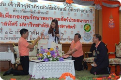 ศาสตราจารย์ ดร. สมเด็จพระเจ้าลูกเธอ เจ้าฟ้าจุฬาภรณวลัยลักษณ์ อัครราชกุมารี ทรงพระกรุณาให้สื่อมวลชนเข้าร่วมงานพระราชทานสัมภาษณ์ เกี่ยวกับโครงการหารายได้ เพื่อสัตว์ป่วยอนาถา ณ อาคารเฉลิมพระเกียรติ 80 พรรษา บรมราชินีนาถ คณะสัตวแพทยศาสตร์ มหาวิทยาลัยเกษตรศาสตร์ เมื่อวันที่ 18 กรกฎาคม 2556 เพื่อเป็นการเผยแพร่พระกรณียกิจ และประชาสัมพันธ์โครงการฯ ซึ่งจัดทำขึ้นเพื่อช่วยเหลือเจ้าของสัตว์ป่วย หรือผู้นำสัตว์มารักษา ที่โรงพยาบาลสัตว์ มหาวิทยาลัยเกษตรศาสตร์ แต่ไม่สามารถรับภาระ หรือมีรายได้ไม่เพียงพอ ที่จะชำระค่ารักษาพยาบาลได้ ก็ให้สามารถชำระเพียงบางส่วนได้ ซึ่ง ศาสตราจารย์ ดร. สมเด็จพระเจ้าลูกเธอ เจ้าฟ้าจุฬาภรณวลัยลักษณ์ อัครราชกุมารี ทรงมีพระปณิธานดำเนินตามรอยเบื้องพระยุคลบาท ของพระบาทสมเด็จพระเจ้าอยู่หัว ที่ได้ทรงก่อตั้ง “กองทุนรักษาพยาบาล สัตว์ป่วยอนาถา” ขึ้น ที่ได้ทรงพระกรุณาโปรดเกล้าโปรดกระหม่อมพระราชทานเงินจากการจำหน่ายเสื้อยืดครอบครัวคุณทองแดง สุนัขทรงเลี้ยง จำนวน 2,000,000 บาท ให้แก่ โรงพยาบาลสัตว์ มหาวิทยาลัยเกษตรศาสตร์ บางเขน เพื่อใช้ในการจัดตั้งกองทุนเมื่อวันที่ 30 สิงหาคม พ.ศ. 2546