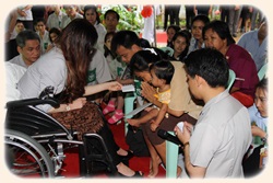 โอกาสนี้ มีราษฎรรับการตรวจรักษาโรคทั่วไป รวมทั้งใช้บริการแพทย์แผนไทย และทันตกรรม รวมจำนวน 103 คน โรคที่พบมาก คือ กระดูกและข้อ รองลงมา คือ โรคทางเดินหายใจและทางเดินอาหาร มีผู้ป่วยที่ต้องส่งต่อไปรักษายังโรงพยาบาลต่างๆ จำนวน 19 คน และมีผู้ป่วยที่ครอบครัวฐานะยากจน ขอพระราชทาน ความช่วยเหลือในการรักษาต่อเนื่อง จำนวน 4 คน ประกอบด้วย เด็กที่ถูกน้ำร้อนลวกลำตัว ผู้ป่วยโรคกล้ามเนื้ออ่อนแรง ผู้ป่วยโรคปากแหว่งเพดานโหว่ และผู้ป่วยโรคโลหิตจางแต่กำเนิด และประสบ อุบัติเหตุขาซ้ายหัก ยังไม่ได้รับการผ่าตัด ทั้งนี้ ทรงซักถามถึงอาการ และสภาพชีวิตความเป็นอยู่ของครอบครัว พร้อมกับทรงมีพระวินิจฉัย โรคร่วมกับคณะแพทย์ เพื่อพระราชทานความช่วยเหลือตามความเหมาะสม ต่อไป