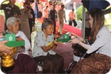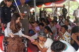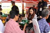 โอกาสนี้ ได้พระราชทานเครื่องนุ่งห่มและยาตำราหลวงแก่ผู้สูงอายุ พระราชทานเครื่องแบบนักเรียน และของเล่นให้แก่เด็กเล็กจำนวนมากที่มาเฝ้ารอรับเสด็จด้วย พร้อมกับทรงมีพระดำรัสถึงพระบาทสมเด็จพระเจ้าอยู่หัว จึงขอเชิญส่วนหนึ่งของพระดำรัสมาดังนี้