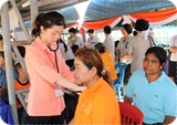 มีราษฎรเข้ารับบริการการตรวจรักษาจำนวน 344 คน เป็นโรคทั่วไป 154 คน แพทย์แผนไทย 115 คน และทันตกรรม 75 คน โรคที่พบส่วนใหญ่เป็นโรคระบบกล้ามเนื้อ โรคผิวหนัง โรคตา โรคระบบทางเดินหายใจ และระบบย่อยอาหาร มีผู้ป่วยส่งต่อเข้ารับการรักษาตามโรงพยาบาลต่างๆ รวม 32 คน มีผู้ป่วยที่ได้รับพระราชทานความช่วยเหลือสงเคราะห์ครอบครัว จำนวน 7 คน อาทิ ผู้ป่วยโรคธาลัสซีเมียชนิดรุนแรง โรคไตวาย โรคอ้วนหยุดหายใจในขณะหลับ โรคมะเร็งเต้านม และโรคมือผิดรูปแต่กำเนิด เป็นต้น