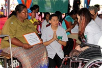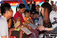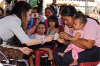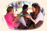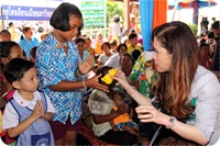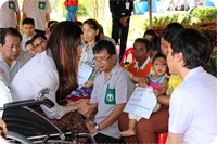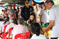 โอกาสนี้ ได้พระราชทานยารักษาโรคแก่ผู้ชรา เครื่องเขียน เครื่องแบบแก่นักเรียน ของเล่น เครื่องนุ่งห่ม แก่เด็ก ที่มาเฝ้าฯ รับเสด็จด้วย ถึงแม้สภาพอากาศ ไม่เอื้ออำนวย และท่ามกลางสายฝนที่โปรยปรายมาตลอดทั้งวัน แต่ราษฎรในพื้นที่ต่างก็เดินทางมาร่วมเฝ้าฯ รับเสด็จเพื่อชื่นชมพระบารมี ตลอดจนเข้ามารอรับบริการตรวจรักษาเป็นจำนวนมาก ซึ่ง โรคที่พบมาก คือ โรคระบบกล้ามเนื้อและกระดูกโรคระบบทางเดินอาหาร โรคเกี่ยวกับตา และโรคไตวาย ทั้งนี้ มีผู้ป่วยได้รับพระราชทานความช่วยเหลือสงเคราะห์ครอบครัว รวม 7 คน ป่วยด้วยโรคต่าง ๆ อาทิ เส้น ประสาทตามีความผิดปกติ มีพัฒนาการในการมองเห็นผิดปกติ มะเร็งต่อมน้ำเหลืองที่ขาหนีบ โรคงวงช้าง หัวบาตรแต่กำเนิด และแขนขวาพิการแต่กำเนิด ซึ่งโปรดให้ส่งตัวไปรักษายังโรงพยาบาลต่าง ๆ ทั้งในภูมิภาค และกรุงเทพฯ โดยไม่เสียค่าใช้จ่าย