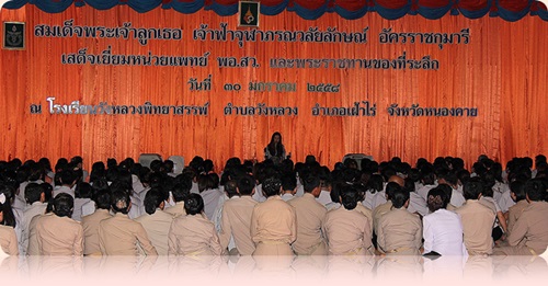 เมื่อวันศุกร์ที่ 30 มกราคม พ.ศ. 2558 สมเด็จพระเจ้าลูกเธอ เจ้าฟ้าจุฬาภรณวลัยลักษณ์ อัครราชกุมารี องค์ประธานกิตติมศักดิ์มูลนิธิแพทย์อาสาสมเด็จพระศรีนครินทราบรมราชชนนี (พอ.สว.) เสด็จไปยังโรงเรียนวังหลวงพิทยาสรรพ์ ตำบลวังหลวง อำเภอเฝ้าไร่ จังหวัดหนองคาย โดยทรงเยี่ยมเยียนราษฎรและการปฏิบัติงานของหน่วยแพทย์อาสาสมเด็จพระศรีนครินทราบรมราชชนนี เพื่อพระราชทานขวัญและกำลังใจแก่เจ้าหน้าที่ ตลอดจนสมาชิก พอ.สว. ที่ร่วมออกปฏิบัติงานหน่วยแพทย์เคลื่อนที่ตรวจรักษาอาการเจ็บป่วยของราษฎร และให้บริการด้านทันตกรรม พร้อมพระราชทานเครื่องนุ่งห่ม และยาตำราหลวงแก่ผู้สูงอายุ เครื่องแบบนักเรียน ของเล่นแก่เด็ก และทรงติดตามการปฏิบัติงานหน่วยแพทย์อาสาสมเด็จพระศรีนครินทราบรมราชชนนี (พอ.สว.) ของจังหวัดหนองคาย ในการเสด็จไปเยี่ยมเยียนราษฎรครั้งนี้ ทรงพระกรุณาโปรดเกล้าฯ ให้หน่วยแพทย์พระราชทานสถาบันวิจัยจุฬาภรณ์ โรงพยาบาลจุฬาภรณ์ โรงพยาบาลศิริราช และโรงพยาบาลจุฬาลงกรณ์ สภากาชาดไทย ร่วมลงพื้นที่ พร้อมทั้งหน่วยสัตวแพทย์อาสาจุฬาภรณ์ ร่วมบริการตรวจรักษาสัตว์เลี้ยงพร้อมให้คำแนะนำแก่เจ้าของในการดูแลสุขภาพสัตว์เลี้ยงของตนด้วย