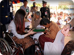 ในการนี้ ได้พระราชทานความช่วยเหลือสงเคราะห์ครอบครัวราษฎรที่เจ็บป่วย โดยทรงรับไว้เป็นคนไข้ในพระอนุเคราะห์ เพื่อส่งไปรักษาอย่างต่อเนื่อง จำนวน 8 ราย ประกอบด้วย ผู้ป่วยโรคท่อน้ำดีอุดตันแต่กำเนิด ลิ้นหัวใจรั่วตีบ เนื้องอกหลอดเลือด ตาเขตั้งแต่กำเนิดตาขวามองไม่เห็น โรคหัวใจ กระดูกผิดปกติบริเวณหน้าอกและเท้าทั้งสองข้าง โดยได้ทรงซักถามถึงสภาพชีวิตความเป็นอยู่ และอาการป่วย พร้อมทั้งพระราชทานแนวทางในการดูแลรักษาตัว ด้วยความห่วงใย
