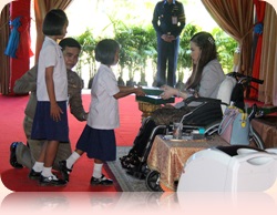 ในการเสด็จไปทรงงานพอ.สว. ทุกครั้ง ทรงพระกรุณาโปรดเกล้าฯ ให้ประชาชนในพื้นที่เข้าเฝ้าอย่างใกล้ชิด ด้วยพระเมตตา และด้วยทรงมีความห่วงใยต่ออาณาประชาราษฎร์ ทั้งผู้สูงอายุ และเด็ก โดยได้พระราชทานสิ่งของเครื่องใช้ที่จำเป็น และยาตำราหลวงแก่ผู้สูงอายุ และพระราชทานเครื่องแบบนักเรียนแก่ เด็กนักเรียน ตลอดจนพระราชทานของเล่นแก่เด็กเล็ก เพื่อส่งเสริมทักษะการเรียนรู้ และพัฒนาการด้านต่างๆด้วย