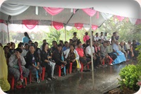 “วันนี้…ต้องขอโทษพี่น้องทุกคน ข้าพเจ้ามาถึงช้า เพราะว่าไข้สูงมาก ลุกไม่ขึ้น ปวดไปหมดทั้งตัว ทั้งฉีดยาแล้ว ทั้งกินยาแล้ว กว่าจะค่อยยังชั่วสัก 6 โมงเย็น ก็เลยตัดสินใจว่าตั้งใจจะมาแล้ว ก็ขอให้ได้มาพบพี่น้องชาวสุราษฎร์ธานีเพื่อมาให้กำลังใจทุกท่าน และสัญญาว่าต่อไป ทางข้าพเจ้าเองและสถาบันวิจัยจุฬาภรณ์ โรงพยาบาลจุฬาภรณ์ ก็จะทำการช่วยเหลือให้รวดเร็วขึ้น…”