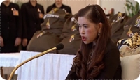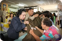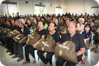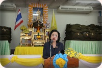 “ …ช่วยกรุณาบอกชาวบ้านด้วยว่า สมเด็จพระเจ้าอยู่หัว มิได้ทรงทิ้งประชาชนเลย ทรงเอาใจใส่เป็นอย่างมาก และข้าพเจ้าทำถวาย แต่คราวนี้ไม่ได้ลงพื้นที่ เพราะข้าพเจ้าอยู่ในสภาพที่ป่วย หมอห้ามออกจากบ้านรบกวนท่านผู้ว่าฯ มารับถุงยังชีพ ณ ที่นี่ และ ขอให้ทุกคนมีกำลังใจทำงาน อันนี้เพื่อประชาชน ประชาชนหมายถึงช่วยประเทศไทย เพราะประชาชนทุกคนเป็นคนไทย… ”