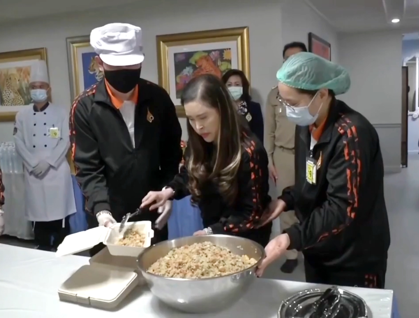 เมื่อวันที่ 19 เมษายน 2564 เวลา 14.03 น. ศาสตราจารย์ ดร.สมเด็จเจ้าฟ้าฯ กรมพระศรีสวางควัฒน วรขัตติยราชนารี เสด็จลง ณ ห้องประกอบอาหารตำหนักทิพย์พิมาน อ.ปากช่อง จ.นครราชสีมา เพื่อทรงประกอบอาหารเมนูข้าวผัดหยางโจว พระราชทานแก่แพทย์ พยาบาล และบุคลากรทางการแพทย์ที่ปฏิบัติงานในสถานการณ์การแพร่ระบาดของโรคติดเชื้อไวรัสโคโรน่า 2019 หรือโควิด-19 (COVID-19) ในพื้นที่ จ.นครราชสีมา ด้วยมีพระประสงค์ให้บุคลากรที่เป็นกำลังหลักในการดูแลรักษาผู้ป่วยมีสุขภาพแข็งแรง ได้รับประทานอาหารปรุงสุกใหม่ ถูกสุขอนามัย มีสารอาหารครบถ้วนตามหลักโภชนาการ ตลอดจนเพื่อเป็นขวัญกำลังใจในการปฏิบัติหน้าที่ด้วยความเสียสละมาโดยตลอด