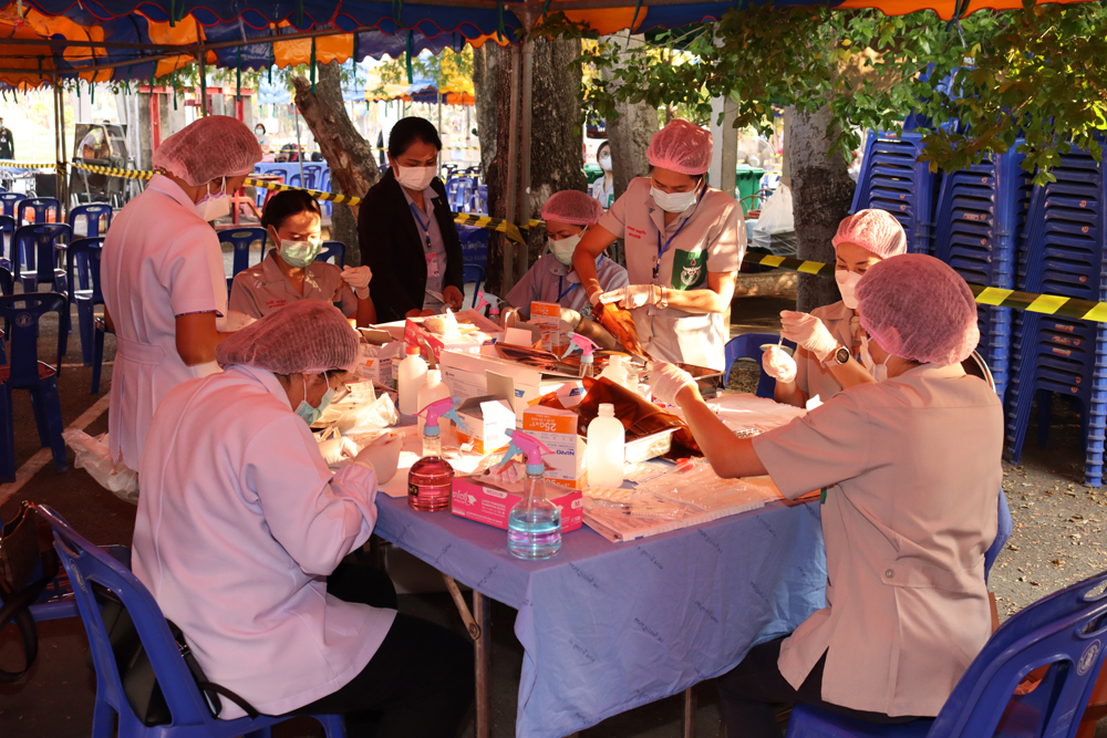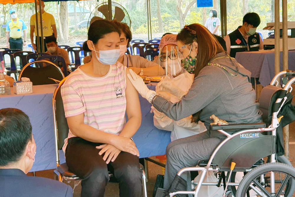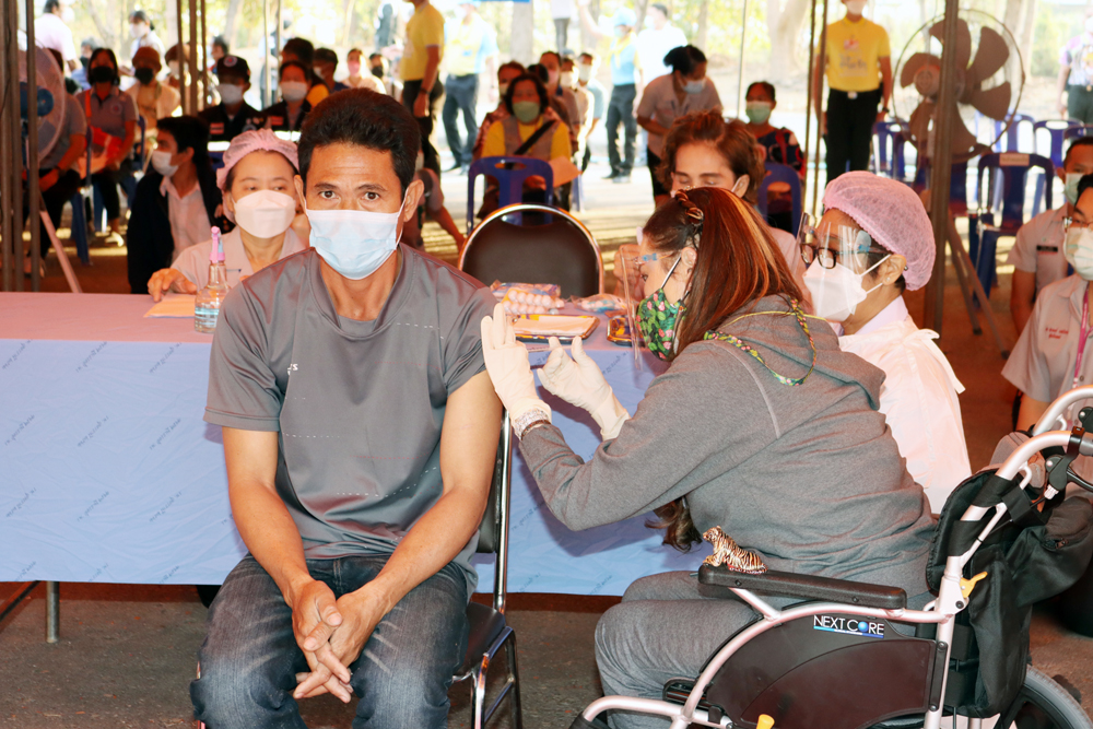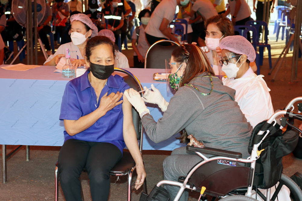 ในการนี้ ทรงร่วมกับหน่วยแพทย์ฯ ฉีดวัคซีนพระราชทานด้วยพระองค์เอง เพื่อเร่งสร้างภูมิคุ้มกันให้แก่ประชาชนทั่วไป และประชาชนกลุ่มเปราะบางจังหวัดอุดรธานี ซึ่งวัคซีนพระราชทาน ประกอบด้วย ไฟเซอร์ 1,000 โดส ซิโนฟาร์ม 250 โดส ซิโนแวค 250 โดส รวม 1,500 โดส