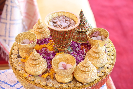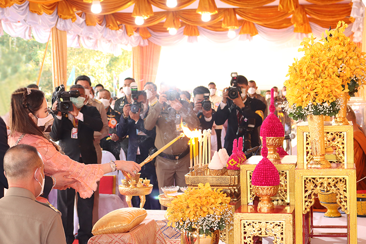จากนั้น เสด็จไปยังมณฑลพิธี ทรงพระสุหร่ายพระพุทธรูปทองคำ พระพุทธรูปเงิน พระพุทธรูปพิงค์โกลด์ และพระพุทธรูปหินจุยเจีย ซึ่งประดิษฐานที่บุษบกดอกบัว