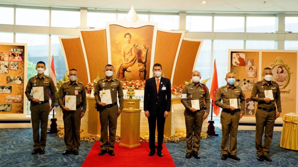 พ.ต.อ.มารุต สุดหนองบัว ผู้กำกับการ และข้าราชการตำรวจ เป็นผู้รับมอบ