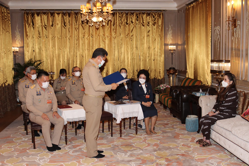 ศาสตราจารย์ ดร.สมเด็จพระเจ้าน้องนางเธอ เจ้าฟ้าจุฬาภรณวลัยลักษณ์ อัครราชกุมารี กรมพระศรีสวางควัฒน วรขัตติยราชนารี พระราชทานพระนโยบาย แนวทางการปฏิบัติงาน โครงการบูรณะพระราชวังสนามจันทร์ จังหวัดนครปฐม แก่ปลัดกระทรวงมหาดไทย และอธิบดีกรมโยธาธิการและผังเมือง ณ ตำหนักทิพย์พิมาน อำเภอปากช่อง จังหวัดนครราชสีมา วันจันทร์ที่ 7 กุมภาพันธ์ 2565