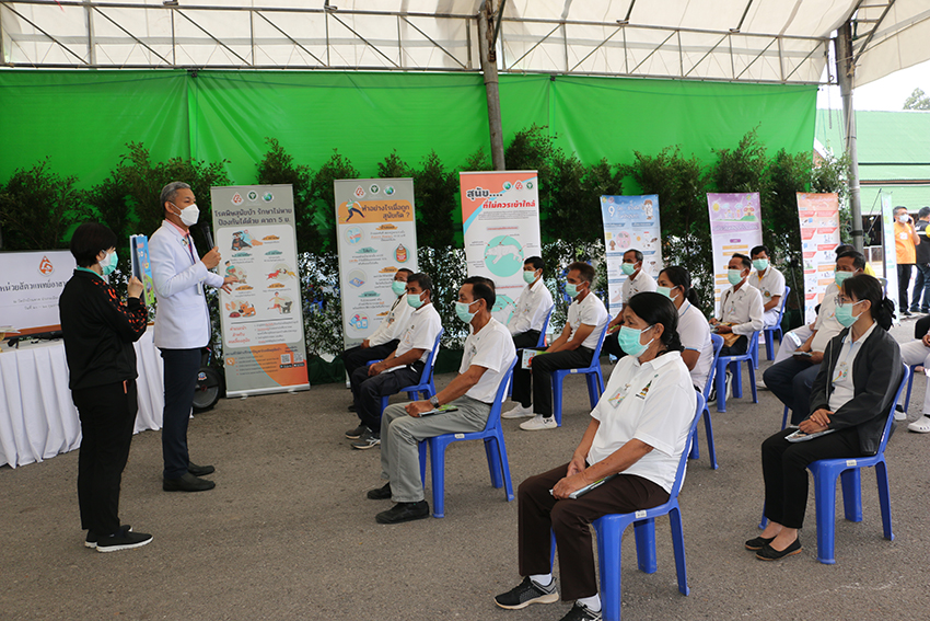 จากนั้น เวลา 08.59 น. เสด็จไปยังพื้นที่ทรงงาน ณ ลานวัดเกษรศีลคุณ เพื่อทรงร่วมปฏิบัติงานกับหน่วยสัตวแพทย์อาสาจุฬาภรณ์ ซึ่งการจัดกิจกรรมในวันนี้ ทีมสัตวแพทย์อาสาจุฬาภรณ์ ได้จัดฝึกอบรมให้ความรู้เรื่องโรคพิษสุนัขบ้า ให้แก่อาสาสมัครสาธารณสุขประจำหมู่บ้าน หรือ อสม. เพื่อนำไปขยายผลให้แก่ประชาชนได้ทราบถึงอันตราย และวิธีการปฏิบัติป้องกันอย่างถูกวิธี ซึ่งในปัจจุบัน ยังไม่สามารถรักษาโรคนี้ให้หายได้ แต่สามารถป้องกันได้ด้วยการฉีดวัคซีนในคนและสัตว์ เพื่อสร้างภูมิคุ้มกันตั้งแต่ก่อนการเสี่ยงต่อการสัมผัสกับโรค หรือสัมผัสกับโรคแล้วก็ตาม