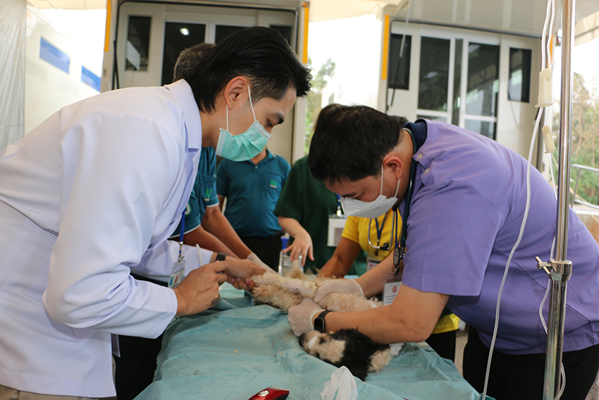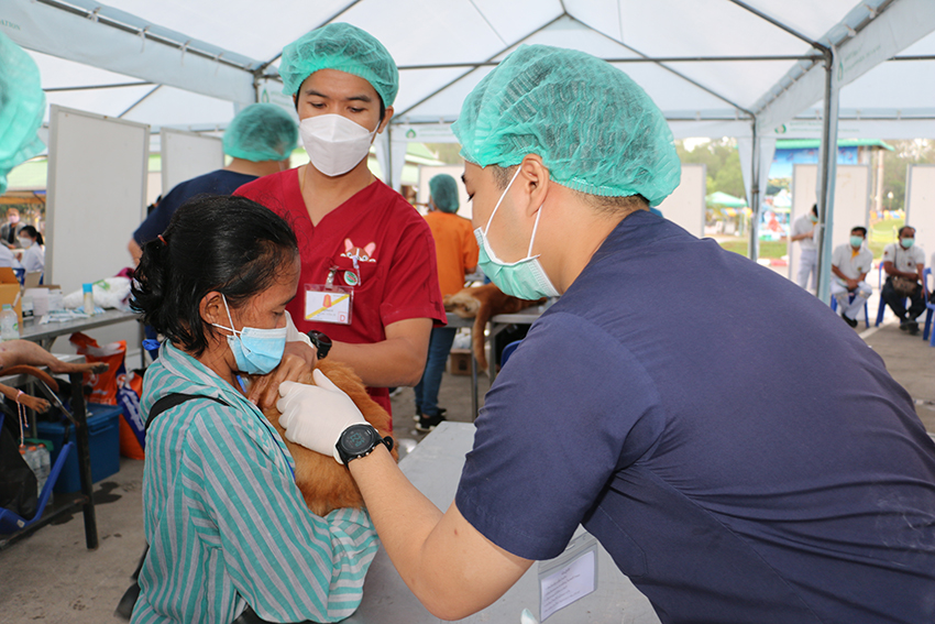 นอกจากนี้ ทรงนำทีมสัตวแพทย์อาสาจุฬาภรณ์ จากคณะสัตวแพทยศาสตร์ มหาวิทยาลัยเกษตรศาสตร์ โรงพยาบาลสัตว์ทิพย์พิมาน สำนักงานปศุสัตว์จังหวัดอุดรธานี และจังหวัดบึงกาฬ ร่วมกับสถาบันวิจัยจุฬาภรณ์ ออกหน่วยให้บริการตรวจสุขภาพ และฉีดวัคซีนป้องกันโรคพิษสุนัขบ้าให้กับสุนัขของประชาชนชาวจังหวัดอุดรธานี จากนั้น ทรงร่วมกับทีมสัตวแพทย์อาสาจุฬาภรณ์ ผ่าตัดทำหมันให้กับสุนัขภายในรถผ่าตัดทำหมันเคลื่อนที่ ของโครงการ “สัตว์ปลอดโรค คนปลอดภัย จากโรคพิษสุนัขบ้า ตามพระปณิธานฯ” เพื่อควบคุมการขยายพันธุ์ของสุนัขจรจัดในพื้นที่ และควบคุมโรคพิษสุนัขบ้าให้เป็นไปอย่างมีประสิทธิภาพ