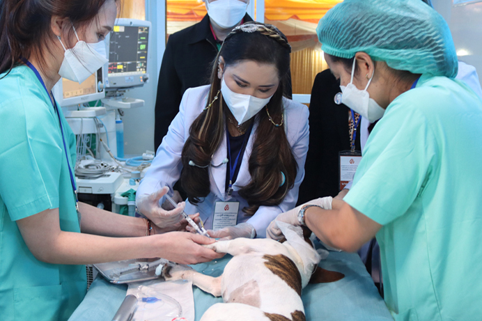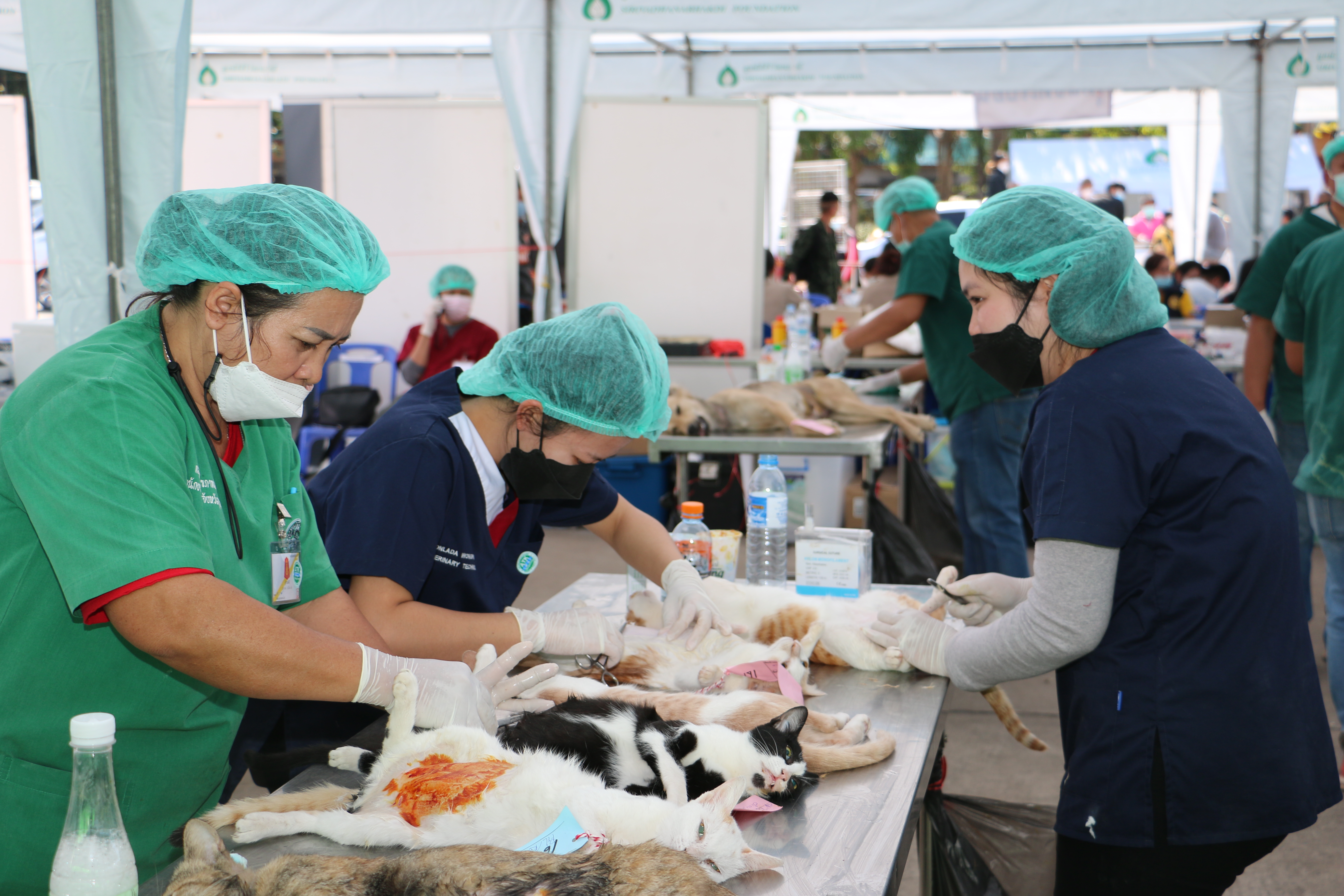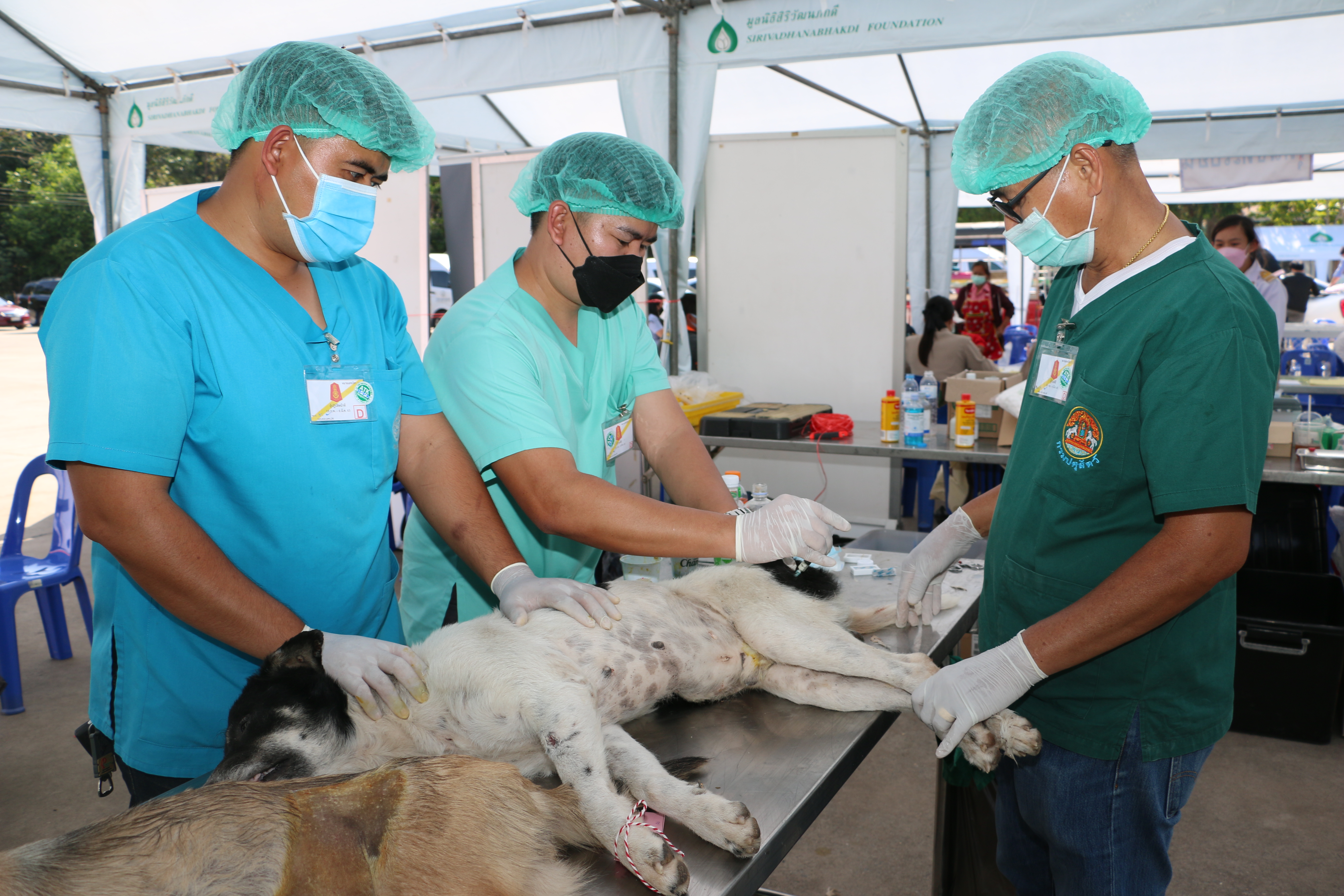 โอกาสนี้ ทรงนำทีมสัตวแพทย์อาสาจุฬาภรณ์ จากคณะสัตวแพทยศาสตร์ มหาวิทยาลัยเกษตรศาสตร์ โรงพยาบาลสัตว์ทิพย์พิมาน สำนักงานปศุสัตว์จังหวัดอุดรธานีและจังหวัดหนองคาย ร่วมกับสถาบันวิจัยจุฬาภรณ์ ออกหน่วยให้บริการตรวจสุขภาพ ฉีดวัคซีนป้องกันโรคพิษสุนัขบ้า และผ่าตัดทำหมันสุนัข เพื่อควบคุมการขยายพันธุ์ และลดจำนวนประชากรสุนัขจรจัดในพื้นที่ นับเป็นอีกหนึ่งมาตรการสำคัญในการลดจำนวนประชากรเสี่ยงที่อาจจะนำพาโรคพิษสุนัขบ้าไม่ให้แพร่กระจาย อีกทั้งจะเป็นการตัดวงจรของโรคพิษสุนัขบ้าไม่ให้ก่ออันตรายมาสู่คนได้
