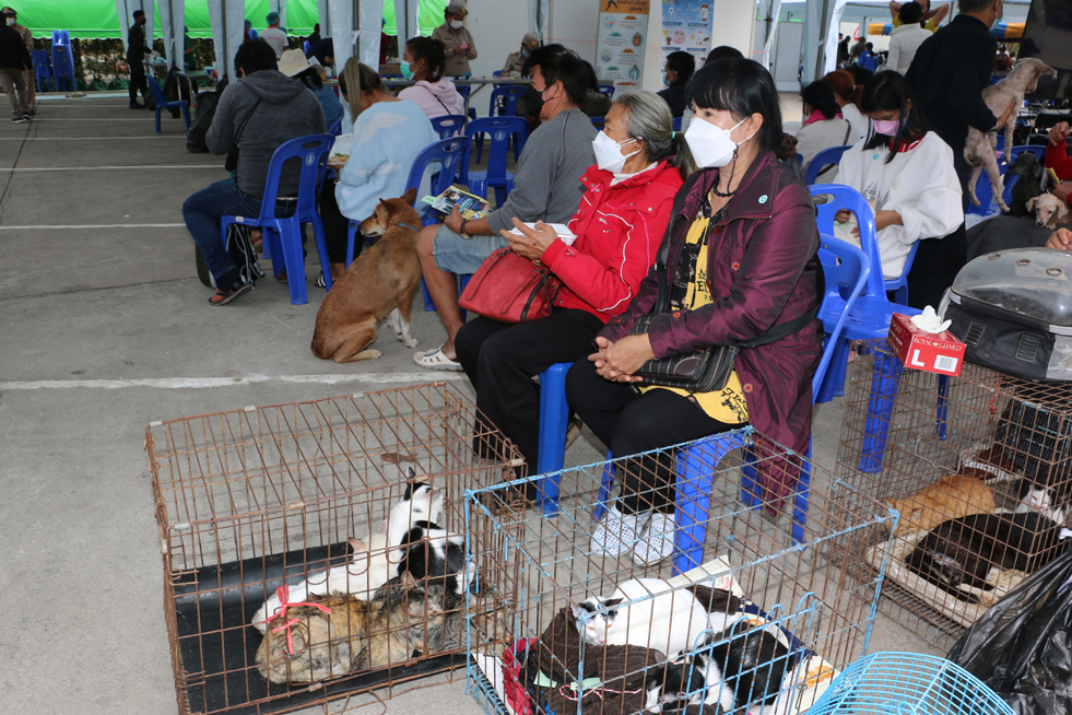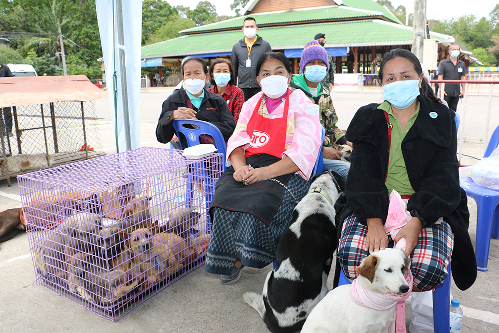 พร้อมกันนี้ ทรงเยี่ยมประชาชนที่นำสุนัขและแมวมารับบริการฉีดวัคป้องกันโรคพิษสุนัขบ้า และทำหมัน โดยวันนี้ มีประชาชนจังหวัดอุดรธานีและจังหวัดข้างเคียง นำสุนัขและแมวทั้งที่เป็นสัตว์เลี้ยงของตนเองและสัตว์จรจัดที่ไม่มีเจ้าของ มารับบริการฉีดวัคซีนฯ รวมจำนวน 297 ตัว และผ่าตัดทำหมันให้กับสุนัขและแมว รวมจำนวน 203 ตัว อีกทั้งทอดพระเนตรการออกโรงทาน ซึ่งจังหวัดอุดรธานี ได้นำร้านอาหารคาวหวานในพื้นที่ มาร่วมออกร้านการกุศลตั้งโรงทาน ให้บริการอาหารและน้ำดื่มแก่ประชาชนที่นำสุนัขและแมวมารับบริการฉีดวัคซีนป้องกันโรคพิษสุนัขบ้า และผ่าตัดทำหมัน และสนับสนุนการออกหน่วยสัตวแพทย์อาสา เพื่อเป็นขวัญกำลังใจในการปฏิบัติงานของทีมสัตวแพทย์ และเจ้าหน้าที่จิตอาสา ด้วย