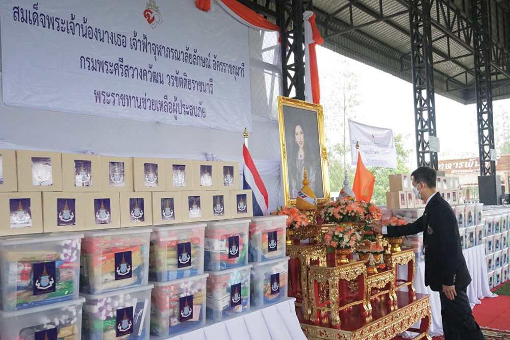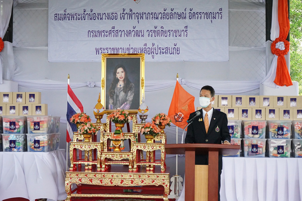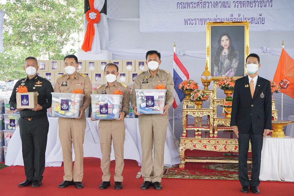 ศาสตราจารย์ ดร.สมเด็จพระเจ้าน้องนางเธอ เจ้าฟ้าจุฬาภรณวลัยลักษณ์ อัครราชกุมารี กรมพระศรีสวางควัฒน วรขัตติยราชนารี โปรดให้นายบัญชา เตชะสกุล รองประธานสถาบันวิจัยจุฬาภรณ์ ฝ่ายกิจกรรมพิเศษ เชิญสิ่งของพระราชทานช่วยเหลือผู้ประสบอุทกภัย ในพื้นที่จังหวัดยะลา จังหวัดปัตตานี และจังหวัดนราธิวาส วันจันทร์ที่ 7 มีนาคม พุทธศักราช 2565 เวลา 13.00 น. ณ กองพลพัฒนาที่ 4 ค่ายรัตนพล ตำบลคลองหอยโข่ง อำเภอคลองหอยโข่ง จังหวัดสงขลา
