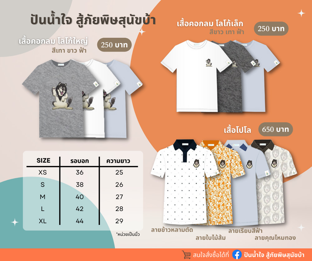 “มูลนิธิจุฬาภรณ์” มูลนิธิในพระดำริของศาสตราจารย์ ดร.สมเด็จพระเจ้าน้องนางเธอ เจ้าฟ้าจุฬาภรณวลัยลักษณ์ อัครราชกุมารี กรมพระศรีสวางควัฒน วรขัตติยราชนารี องค์ประธานมูลนิธิจุฬาภรณ์ ซึ่งได้ดำเนินกิจกรรมสาธารณประโยชน์นานัปการเพื่อช่วยเหลือผู้ป่วยยากไร้และผู้ด้อยโอกาสทั่วประเทศ รวมทั้งเพื่อส่งเสริมสุขภาพอนามัยและคุณภาพชีวิตความเป็นอยู่ ซึ่งมีความเกี่ยวโยงกับสุขภาพของสัตว์เลี้ยงที่มีความใกล้ชิดกับประชาชน จึงขอเชิญชวนประชาชนผู้สนใจ ร่วมเป็นส่วนหนึ่งของการสร้างกุศลในครั้งนี้ โดยบริจาคเงินสมทบทุนเพื่อจัดซื้อเครื่องมือและอุปกรณ์ทางการสัตวแพทย์ พร้อมรับเสื้อลายภาพวาดผีพระหัตถ์ “คุณไหมทอง” สุนัขทรงเลี้ยง ของ ศาสตราจารย์ ดร.สมเด็จพระเจ้าน้องนางเธอ เจ้าฟ้าจุฬาภรณวลัยลักษณ์ อัครราชกุมารี กรมพระศรีสวางควัฒน วรขัตติยราชนารี เป็นที่ระลึก ซึ่งผลิตเป็น 2 แบบ คือ เสื้อยืดคอกลมมี 3 สี ได้แก่ สีขาว สีฟ้า สีเทา มูลค่า 250 บาท และเสื้อโปโลมี 4 ลวดลาย ได้แก่ ลายใบไม้ส้ม ลายข้าวหลามตัด ลายเรียบสีฟ้า ลายคุณไหมทอง มูลค่า 650 บาท ผู้สนใจสามารถติดตามรายละเอียดพระกรณียกิจได้ในรายการพิเศษ “ปันน้ำใจ สู้ภัยพิษสุนัขบ้า” ออกอากาศวันพุธที่ 28 กันยายน ศกนี้ เวลา 20.30 – 21.30 น. ทางสถานีวิทยุโทรทัศน์กองทัพบก (ททบ.5) และร่วมบริจาคด้วยเงินสดหรือโอนเงินเข้าบัญชีธนาคารไทยพาณิชย์ จำกัด เลขที่บัญชี 468-116003-1 ชื่อบัญชีมูลนิธิจุฬาภรณ์ เพื่อโครงการ “ปันน้ำใจ สู้ภัยพิษสุนัขบ้า” แล้วส่งหลักฐานการโอนเงินไปที่ อีเมล [email protected] หรือ ที่โทรสาร 0-2553-8527 เพื่อรับใบเสร็จไปลดหย่อนภาษีได้ 2 เท่า และรับเสื้อเป็นที่ระลึก ติดตามข้อมูลเพิ่มเติมได้ที่ แฟนเพจเฟซบุ๊ก : ปันน้ำใจ สู้ภัยพิษสุนัขบ้า หรือ มูลนิธิจุฬาภรณ์ โทร. 0-2553-8555