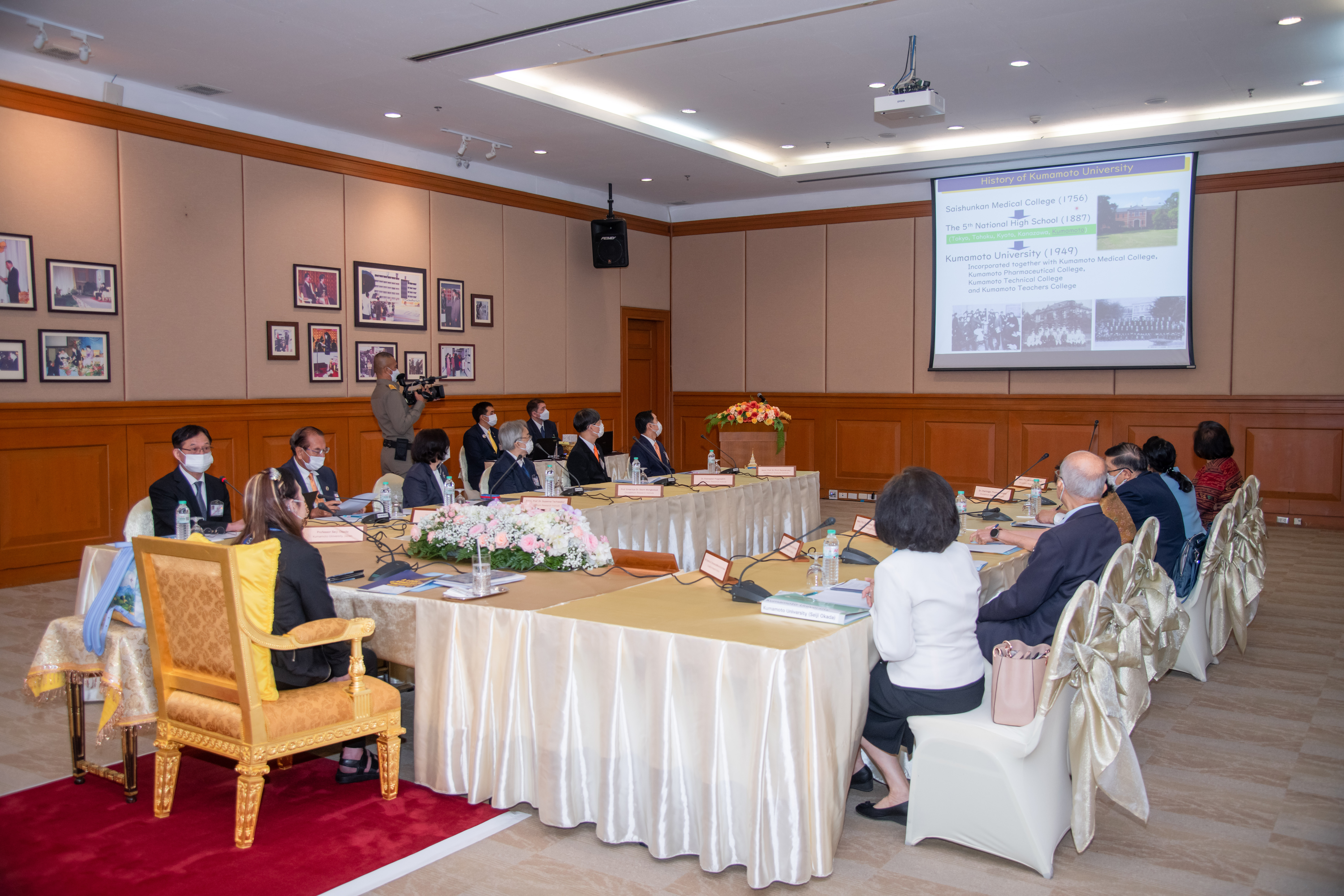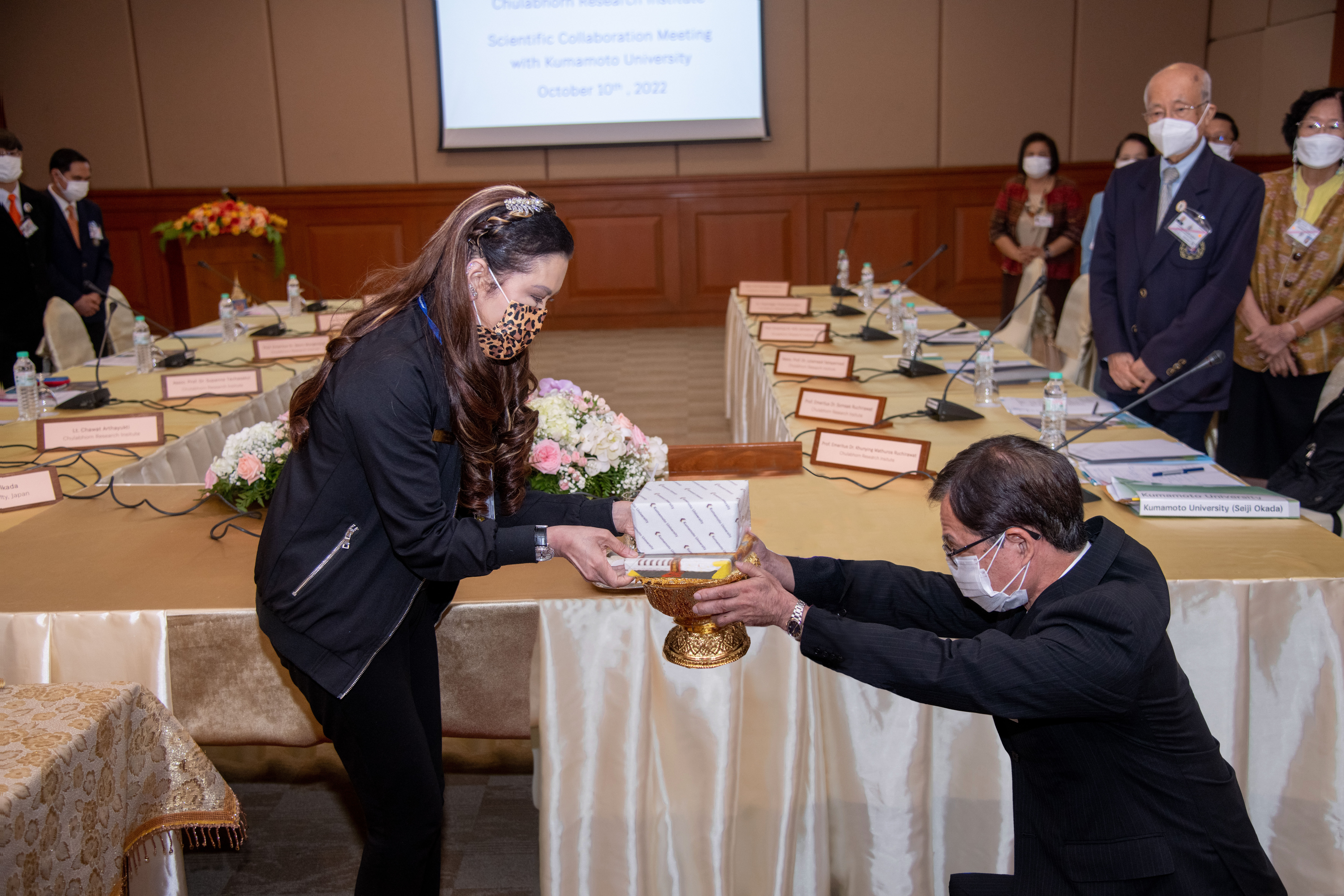 เมื่อวันที่ 10 ตุลาคม 2565 ศาสตราจารย์ ดร.สมเด็จพระเจ้าน้องนางเธอ เจ้าฟ้าจุฬาภรณวลัยลักษณ์ อัครราชกุมารี กรมพระศรีสวางควัฒน วรขัตติยราชนารี องค์ประธานสถาบันวิจัยจุฬาภรณ์ เสด็จออก ณ ห้องประชุม 1 ศูนย์ประชุมสถาบันวิจัยจุฬาภรณ์ ทรงเป็นประธานการประชุมและหารือความร่วมมือ ด้านงานวิจัย และการเรียนการสอนกับ Professor Seiji Okada, Division of Hematopoiesis, Kumamoto University ผู้แทนจาก Kumamoto University ประเทศญี่ปุ่น ในโอกาสที่ องค์ประธานสถาบันวิจัยจุฬาภรณ์ จะทรงลงนามข้อตกลงความร่วมมืองานวิจัยและวิชาการ ระหว่างสถาบันวิจัยจุฬาภรณ์ สถาบันบัณฑิตศึกษาจุฬาภรณ์ และ Kumamoto University โดย Professor Seiji Okada ได้ถวายข้อมูลการดำเนินงานด้านงานวิจัยและการเรียนการสอนของ Kumamoto University