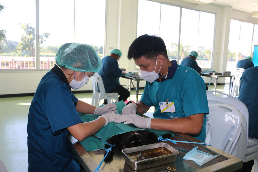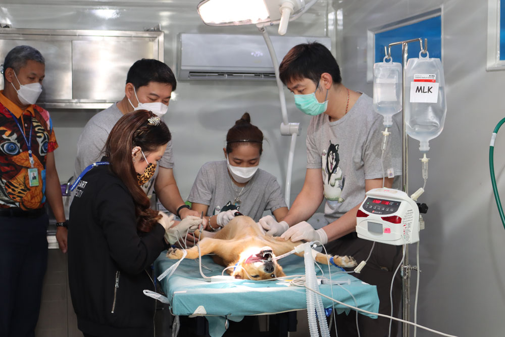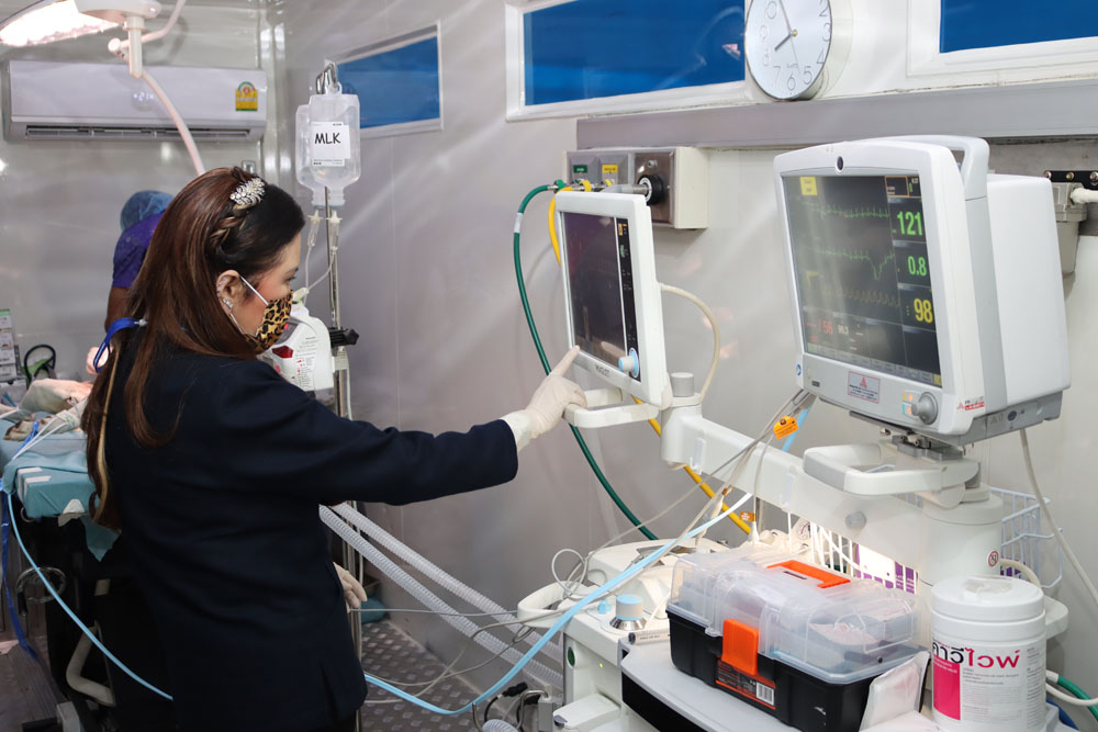พร้อมกันนี้ ทรงงานวิสัญญีทางสัตวแพทย์ ร่วมกับทีมสัตวแพทย์อาสาจุฬาภรณ์ ที่บูรณาการความร่วมมือจากคณะสัตวแพทยศาสตร์ มหาวิทยาลัยเกษตรศาสตร์ โรงพยาบาลสัตว์ทิพย์พิมาน และสถาบันวิจัยจุฬาภรณ์ โดยทรงผ่าตัดทำหมันสุนัขภายในรถผ่าตัดเคลื่อนที่ ซึ่งทรงติดตามเฝ้าระวังสัญญาณชีพของสุนัขแต่ละตัวอย่างใกล้ชิด ผ่านจอมอนิเตอร์ที่แสดงผลอัตราการเต้นของหัวใจ อัตราการหายใจ ความดันโลหิต รวมถึงอุณหภูมิของร่างกาย เพื่อทรงประเมินความปลอดภัยของสุนัขระหว่างดำเนินการผ่าตัด