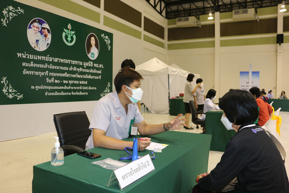 พระกรณียกิจด้านการแพทย์และสาธารณสุข เพื่อช่วยเหลือประชาชนและสรรพสัตว์ในพื้นที่ภาคเหนือ ณ ศูนย์ประชุมและการแสดงสินค้านานาชาติ GMS เชียงราย อำเภอเมืองเชียงราย จังหวัดเชียงราย