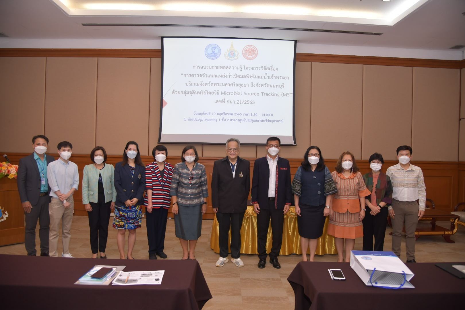 เมื่อโครงการวิจัยดำเนินการแล้วเสร็จ จึงได้จัดการอบรมถ่ายทอดความรู้ให้แก่พนักงานการประปานครหลวง จำนวน 36 ท่าน เมื่อวันที่ 10 พฤศจิกายน 2565 ณ ห้องประชุม 1 อาคารศูนย์ประชุมสถาบันวิจัยจุฬาภรณ์ โดยได้รับเกียรติจากศาสตราจารย์เกียรติคุณ ดร.ศกรณ์ มงคลสุข จาก สถาบันวิจัยจุฬาภรณ์ กล่าวเปิดงานและต้อนรับคณะผู้เข้ารับการอบรม และคุณสมศักดิ์ ปัสนานนท์ ผู้เชี่ยวชาญการประปานครหลวง ระดับ 9 จากการประปานครหลวง ร่วมกล่าวเปิดงาน กิจกรรม ภายในงานประกอบด้วยการบรรยายเรื่อง หลักการตรวจวิเคราะห์จุลินทรีย์ระบุแหล่งกำเนิดมลพิษ (Microbial Source Tracking) พร้อมทั้งนำเสนอผลการศึกษาของโครงการ และจัดแสดงนิทรรศการภายในงาน