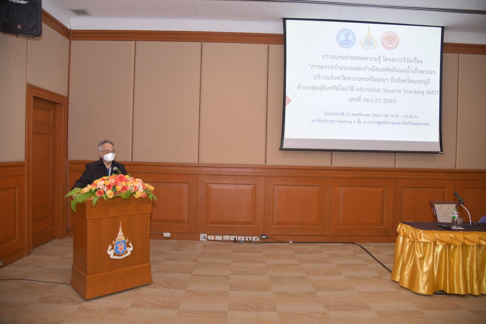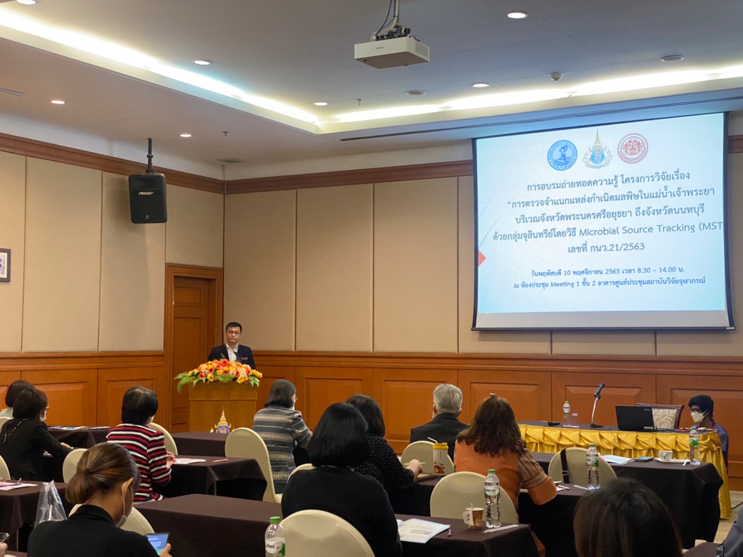 ดร.ขวัญรวี สิริกาญจน นักวิจัยเชี่ยวชาญ ห้องปฏิบัติการวิจัยเทคโนโลยีชีวภาพ หัวหน้าโครงการวิจัยเรื่อง “การตรวจจำแนกแหล่งกำเนิดมลพิษในแม่น้ำเจ้าพระยา บริเวณจังหวัดพระนครศรีอยุธยาถึงจังหวัดนนทบุรี ด้วยกลุ่มจุลินทรีย์โดยวิธี Microbial Source Tracking (MST)” ได้ดำเนินการจัดอบรมถ่ายทอดความรู้จากการดำเนินโครงการวิจัย ให้กับ พนักงานของการประปานครหลวง เมื่อวันที่ 10 พฤศจิกายน 2565 ณ ห้องประชุม Meeting Room 1 ชั้น 2 อาคารศูนย์ประชุมสถาบันวิจัยจุฬาภรณ์