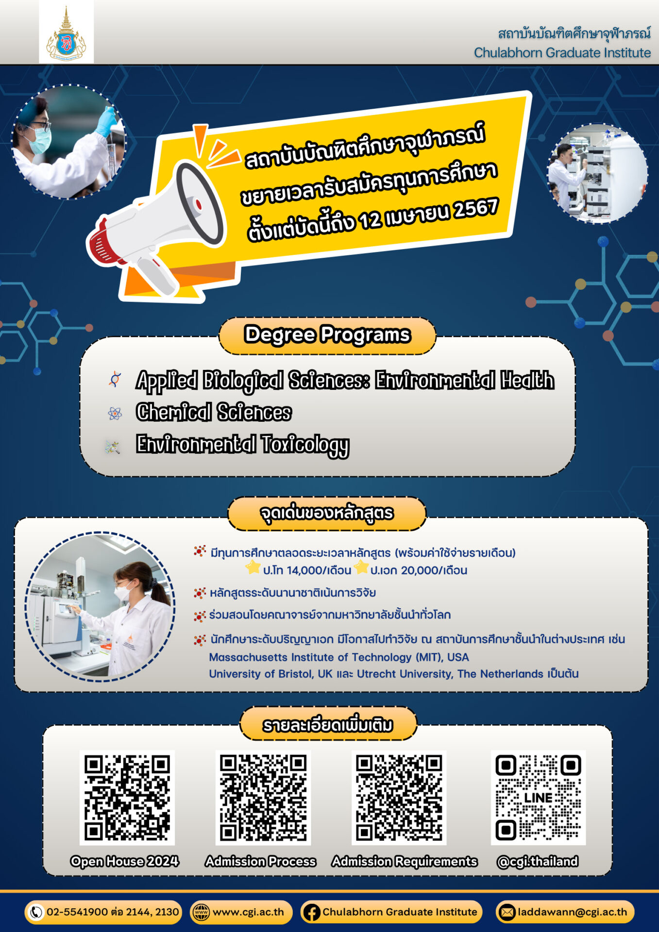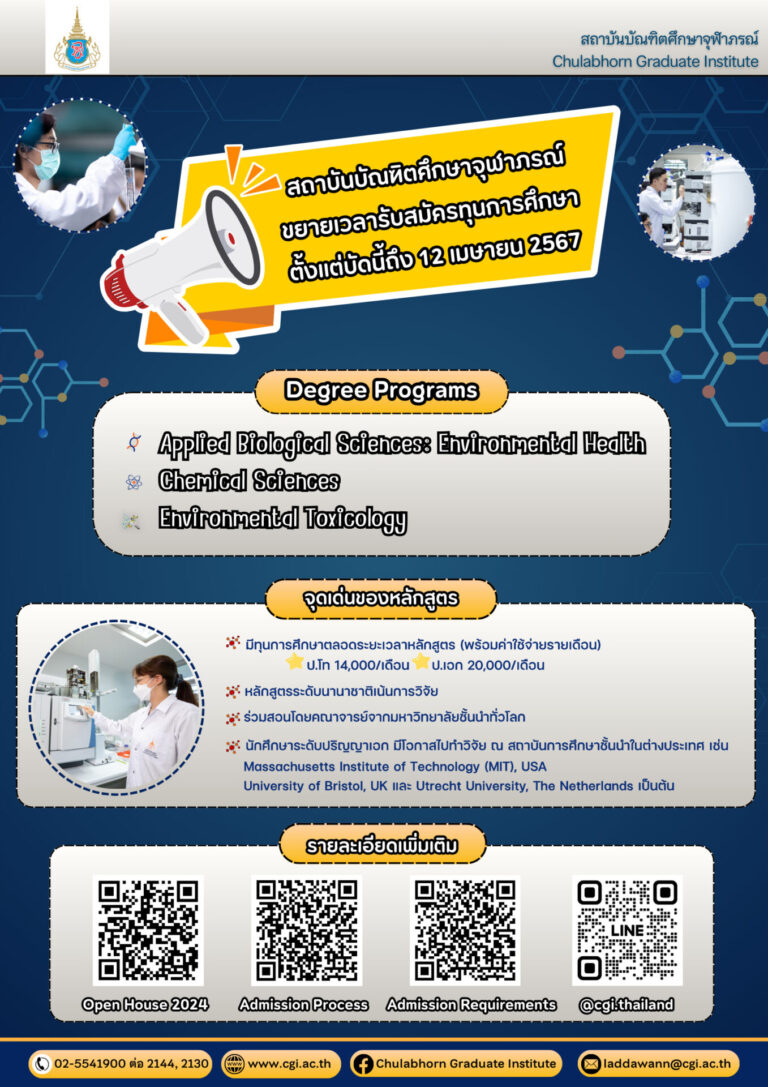 สถาบันบัณฑิตศึกษาจุฬาภรณ์ ขยายเวลารับสมัครทุนการศึกษา