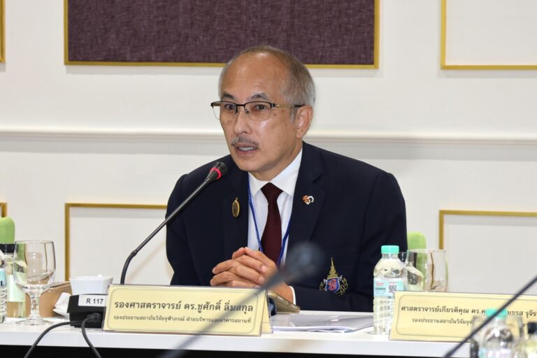 รองศาสตราจารย์ ดร.ชูศักดิ์ ลิ่มสกุล รองประธานสถาบันวิจัยจุฬาภรณ์ ฝ่ายบริหารและอาคารสถานที่ และรองศาสตราจารย์ ดร.จุฑามาศ สัตยวิวัฒน์ รองประธานสถาบันวิจัยจุฬาภรณ์ ฝ่ายธุรการวิทยาศาสตร์ พร้อมด้วยคณะผู้บริหารและนักวิจัย เข้าร่วมการประชุมหารือการประเมินผลลัพธ์และผลกระทบแผนงานวิจัยและนวัตกรรมขนาดใหญ่ ประจำปีงบประมาณ พ.ศ. 2567 โดยมี ดร.ปิยะทัศน์ พาฬอนุรักษ์ ผู้อำนวยการสำนักติดตามและประเมินผล สำนักงานคณะกรรมการส่งเสริมวิทยาศาสตร์ วิจัยและนวัตกรรม (สกสว.) ชี้แจงแนวทางการประเมินผลลัพธ์และผลกระทบแผนงานวิจัยและนวัตกรรมขนาดใหญ่ฯ และคณะผู้ประเมิน จากมหาวิทยาลัยเกษตรศาสตร์ นำโดย ผู้ช่วยศาสตราจารย์