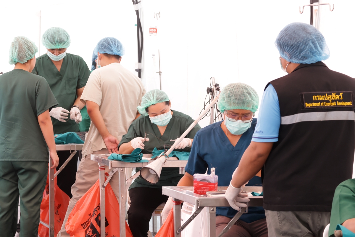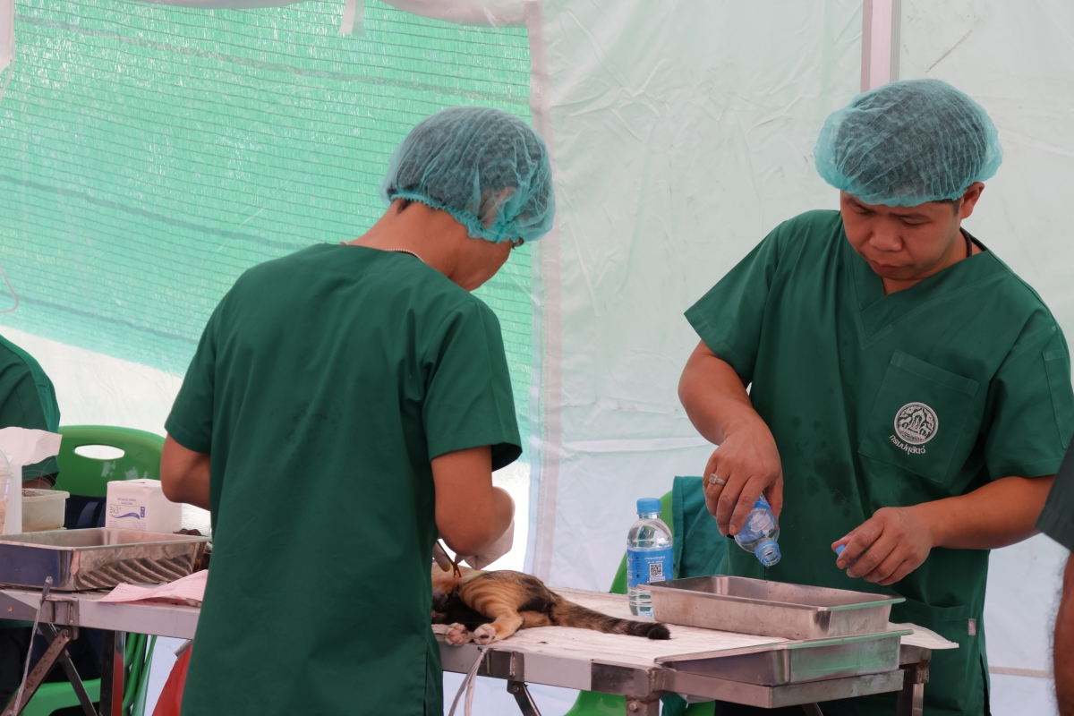 พร้อมกันนี้ ทรงงานด้านสัตวแพทย์ในฐานะผู้ทรงคุณวุฒิเชี่ยวชาญพิเศษ สาขาศัลยศาสตร์ ด้านวิสัญญีทางสัตวแพทย์ ที่ทรงชำนาญด้านการวางยาสลบให้กับสัตว์ที่ต้องได้รับการรักษาด้วยวิธีทางศัลยกรรม ร่วมกับทีมสัตวแพทย์อาสาจุฬาภรณ์ ดำเนินการผ่าตัดทำหมัน และรักษาโรคที่พบให้กับสุนัขของประชาชน โดยทรงใส่พระทัยในการติดตามอาการของสัตว์ทุกตัวที่ทรงรักษาให้เป็นไปตามแผนการรักษาอย่างมีประสิทธิภาพ เริ่มตั้งแต่ทรงวางแผนการใช้ยาสลบ การให้ยานำสลบ การเฝ้าระวังสัญญาณชีพด้วยอุปกรณ์และเครื่องมือทางการสัตวแพทย์ที่มีมาตรฐานและความปลอดภัยสูง ทั้งนี้ การผ่าตัดทำหมัน ถือเป็นวิธีการคุมกำเนิดถาวรที่ให้ผลดีและปลอดภัยที่สุดแก่สุนัขและแมว อีกทั้งเป็นการควบคุมจำนวนประชาสัตว์ไม่ให้มีการขยายพันธุ์ จนกลายเป็นการสร้างปัญหาแก่ชุมชน สังคม และส่งผลกระทบต่อสุขภาพอนามัยของประชาชนในภายหลัง โดยสรุปผลจากการดำเนินกิจกรรมออกหน่วยสัตวแพทย์อาสาจุฬาภรณ์ ในระหว่างวันที่ 4-6 เมษายน 2568 ที่ครอบคลุมทั้ง