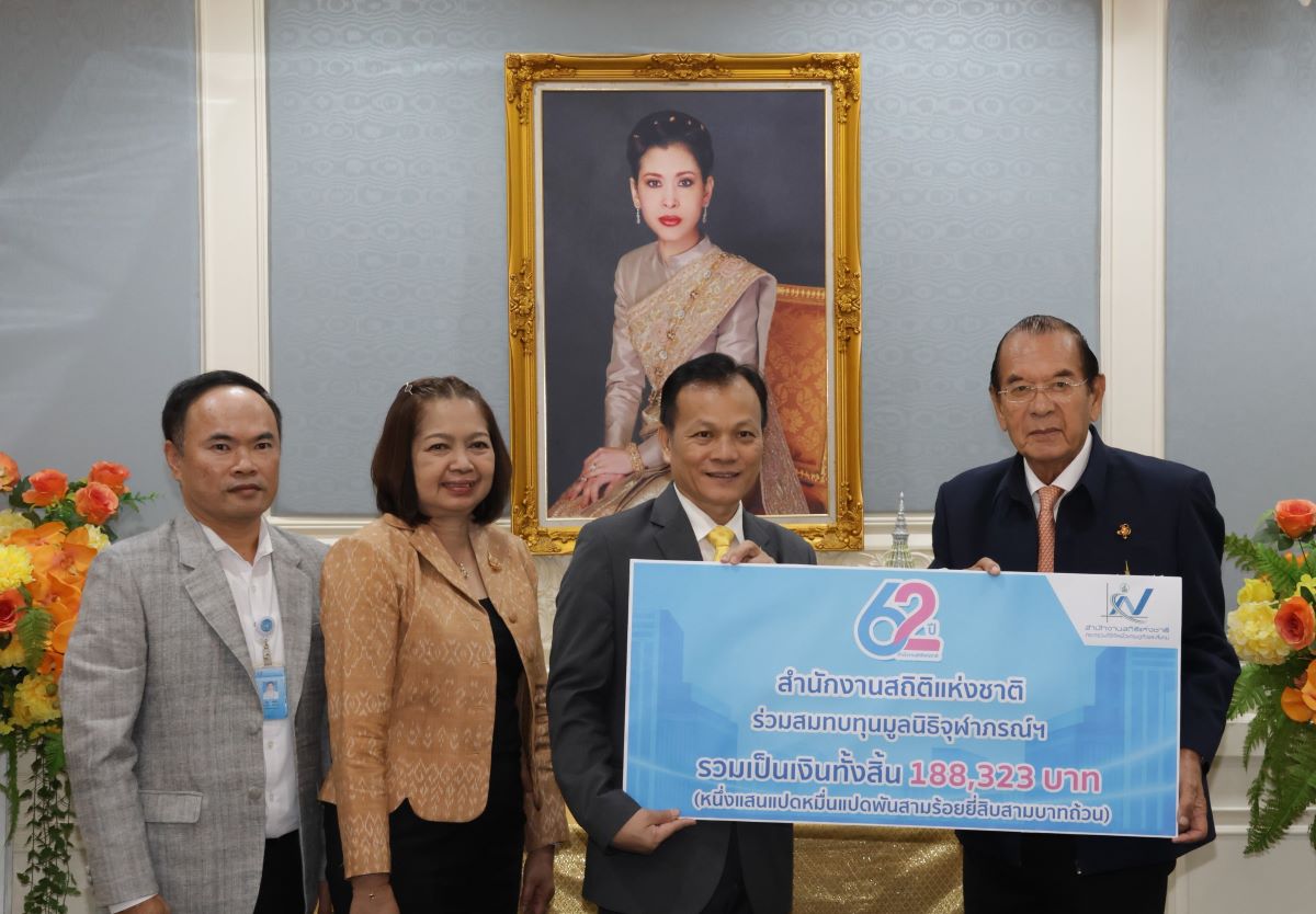 จุฬาภรณ์ จำนวน 188,323 บาท จากสำนักงานสถิติแห่งชาติเนื่องในโอกาสวันคล้ายวันสถาปนาครบรอบ 62 ปี โดยมี