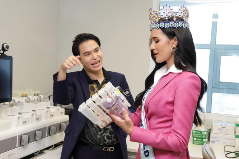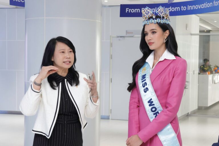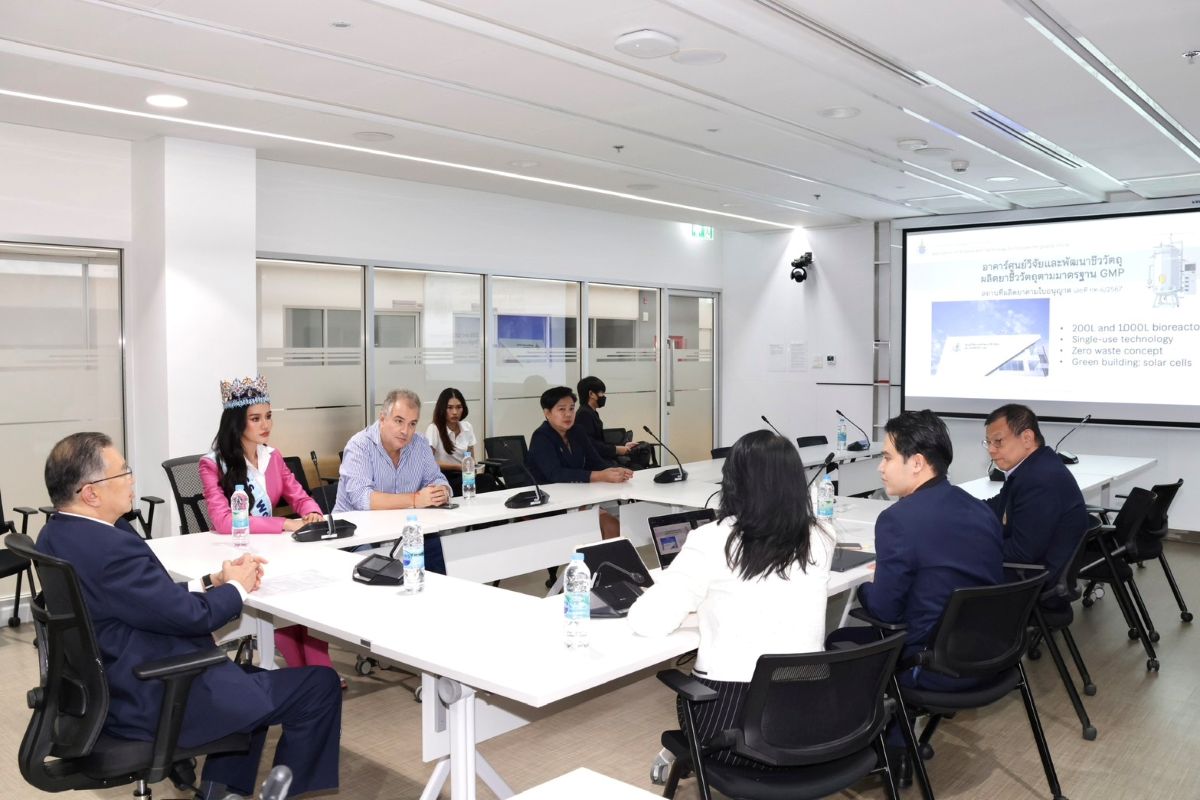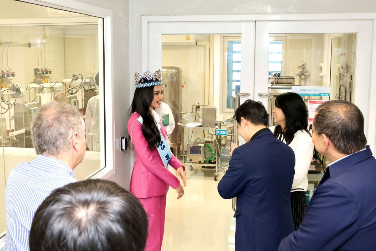 สุชาตา ช่วงศรี ผู้ดำรงตำแหน่ง Miss World 2025 ในโอกาสเข้าศึกษาดูงาน และติดตามความก้าวหน้าการดำเนินงานด้านวิจัย พัฒนาและผลิตยารักษามะเร็งของศูนย์วิจัยและพัฒนาชีววัตถุ สถาบันวิจัยจุฬาภรณ์ (Center for Biologics Research and Development: CBRD) ที่มีศักยภาพความพร้อมทั้งด้านโครงสร้างพื้นฐาน เทคโนโลยี และระบบการดำเนินงาน ที่สามารถรองรับกระบวนการพัฒนายา